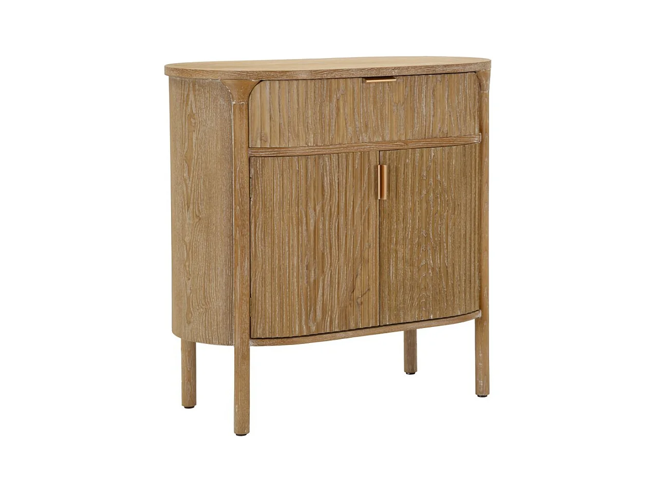 Cassettiera con 2 ante e 3 cassetti, design vintage, legno e metallo, noce (90x150x40 cm)