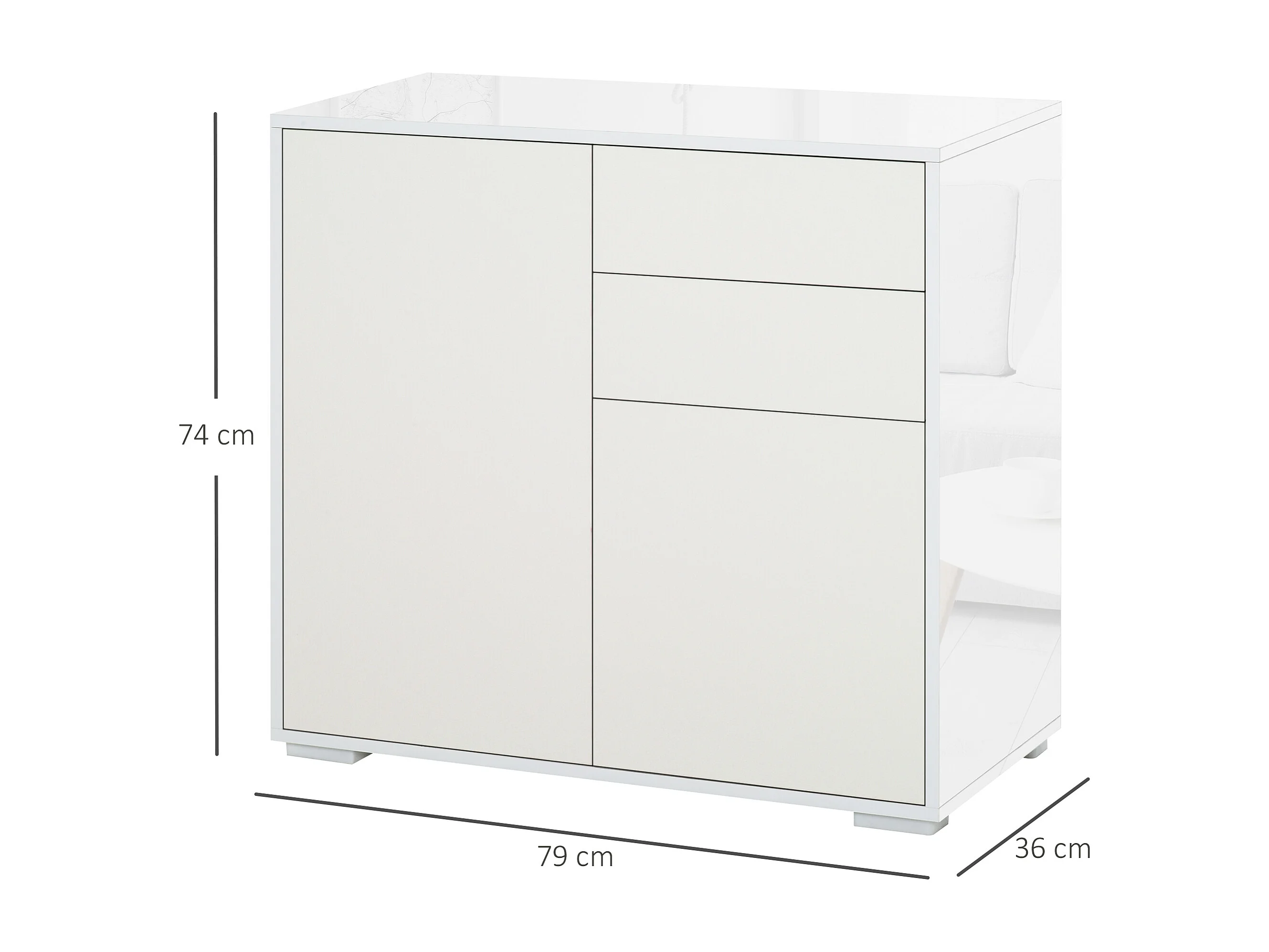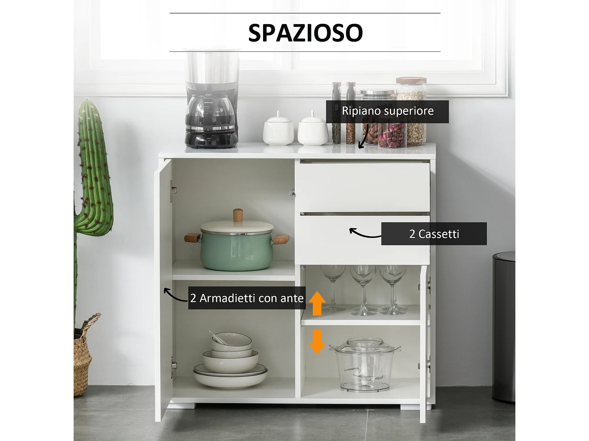 Credenza moderna con ante ammortizzate e apertura a pressione bianco