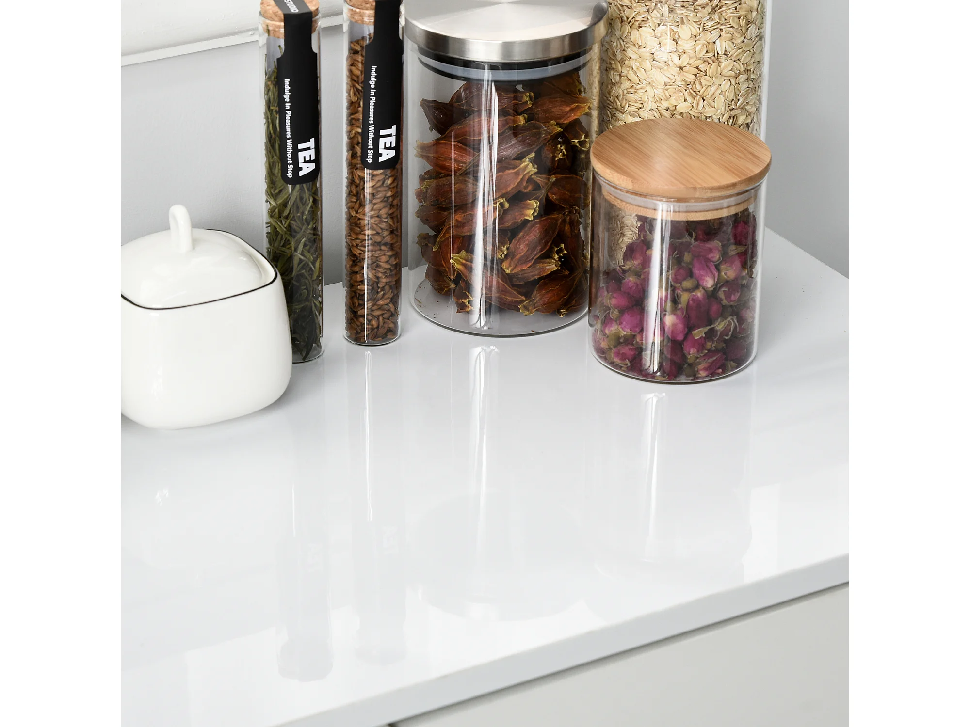 Credenza cucina, mobile cucina con armadietto a 2 ante soft close in vetro temperato