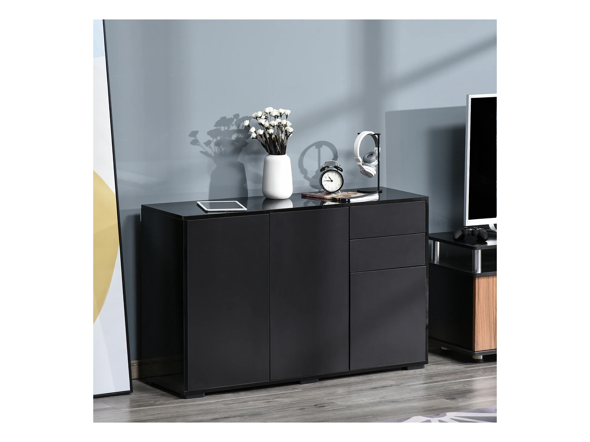 Mobile rangement salon chambre 2 tiroirs 2 portes con étagère noir 117x36x74 cm