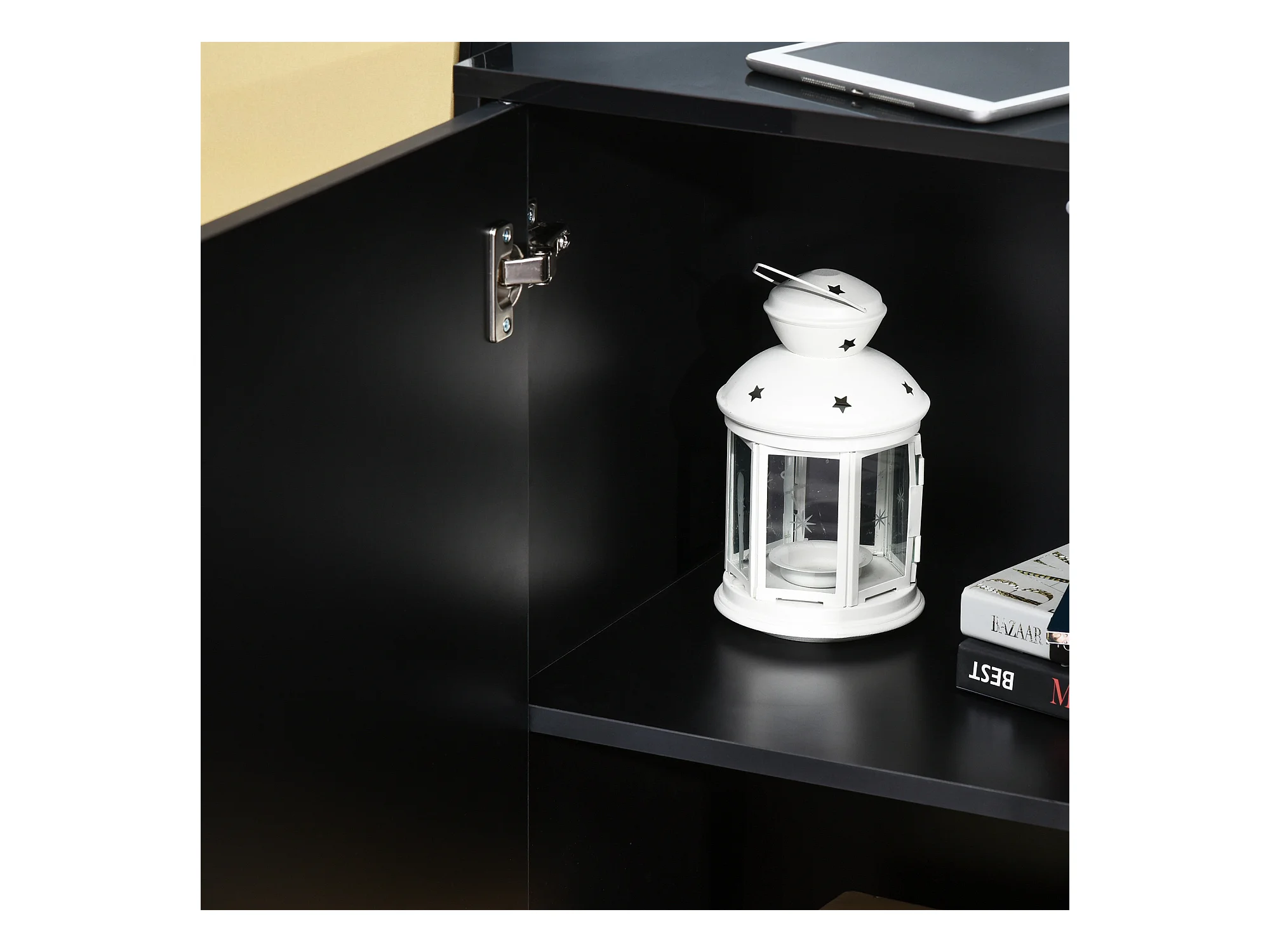 Buffet a 4 porte in MDF e metallo con bordi dorati per salone sala da pranzo nera