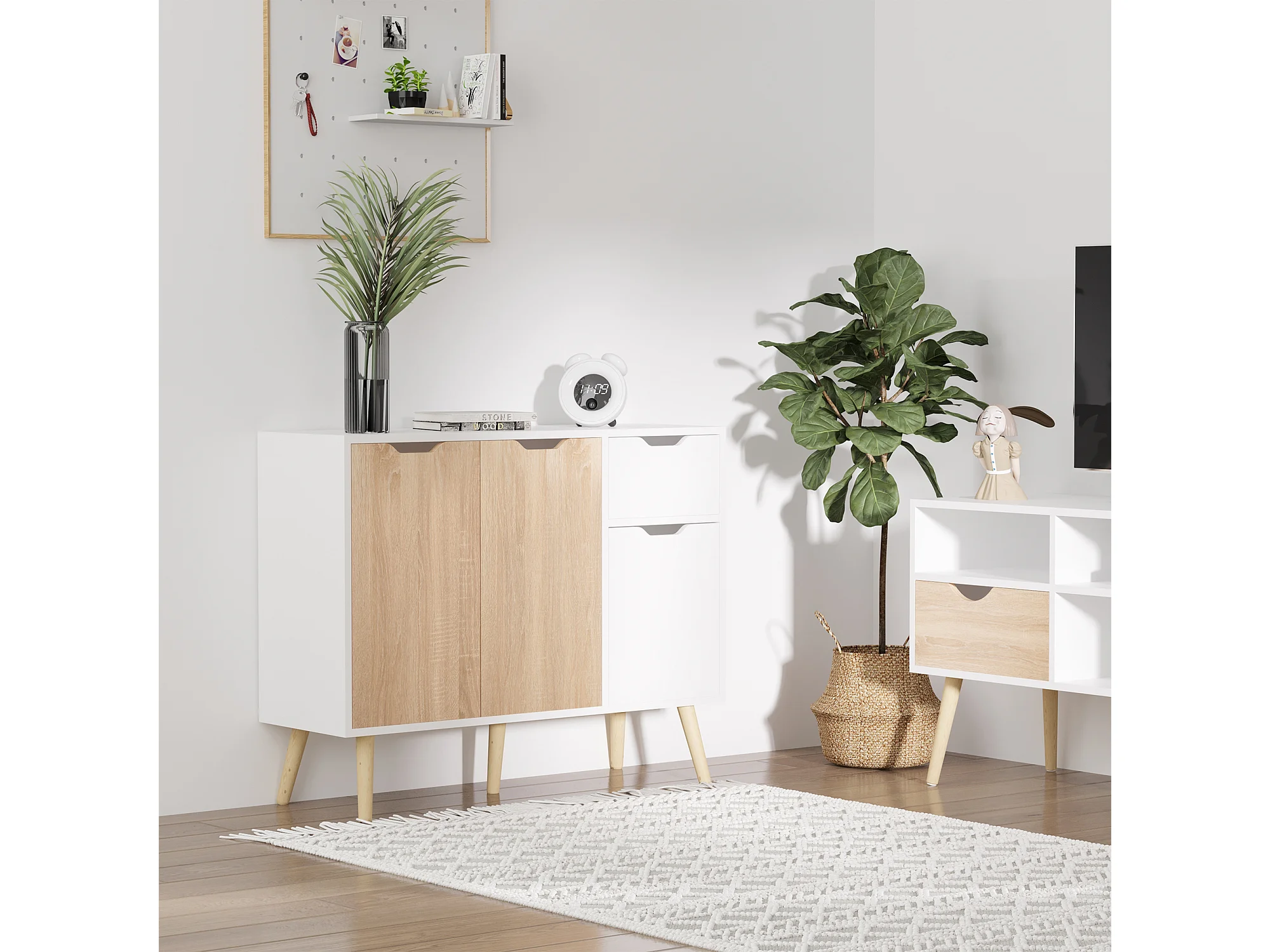 Credenza soggiorno con 2 cassetti e armadietto con ripiano regolabile