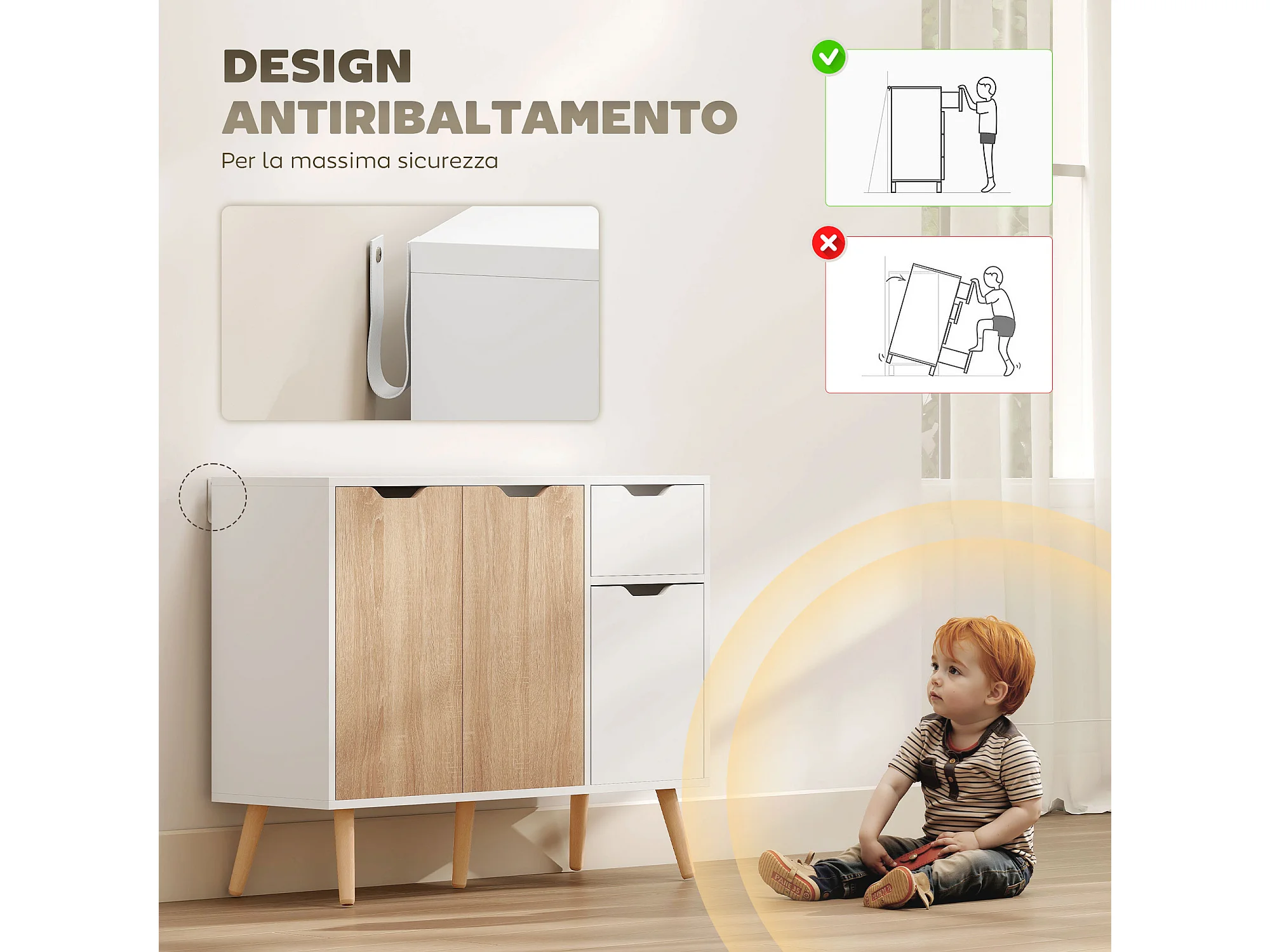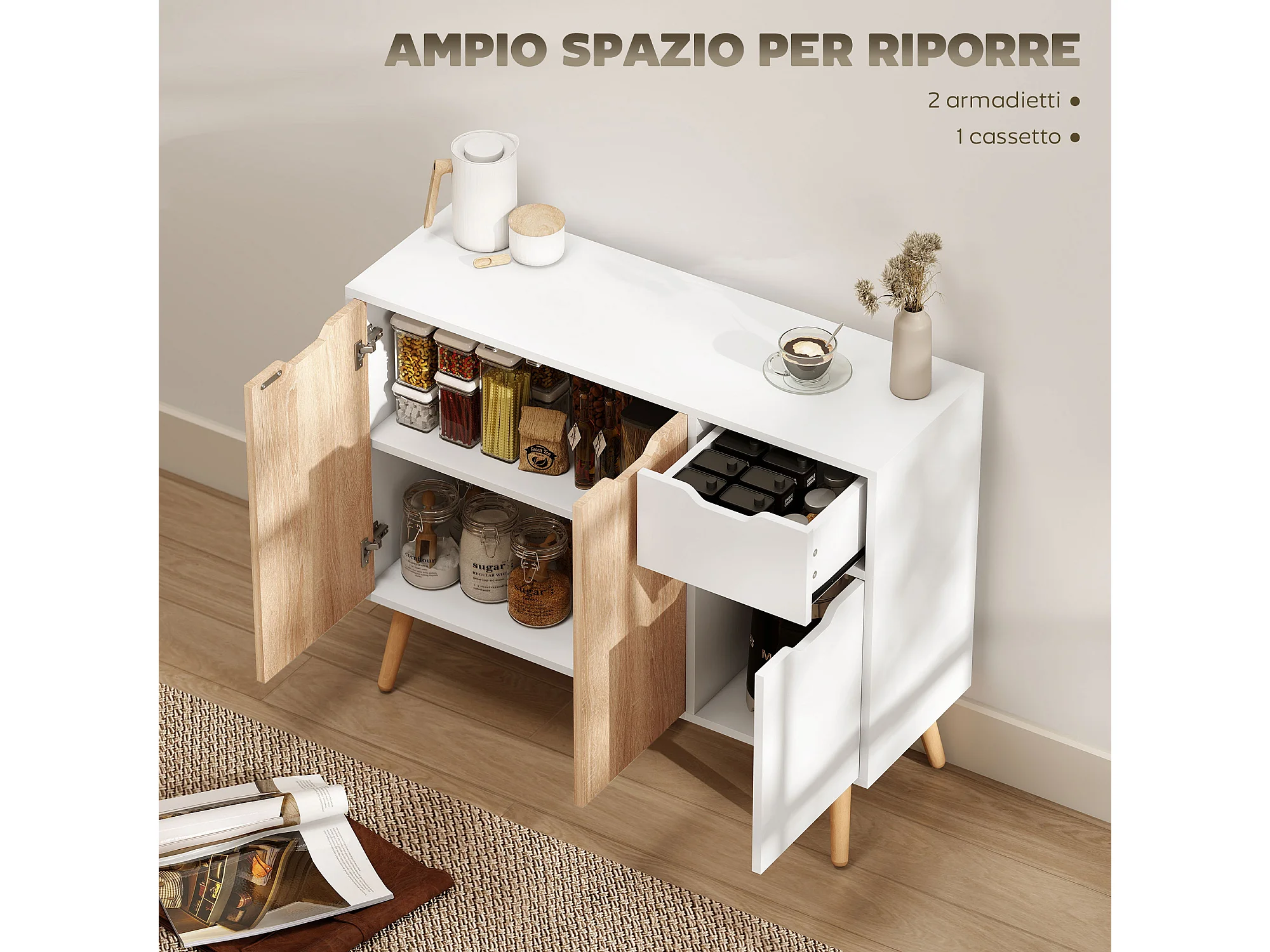 Mobiletto multiuso stile nordico con cassetto e armadietti