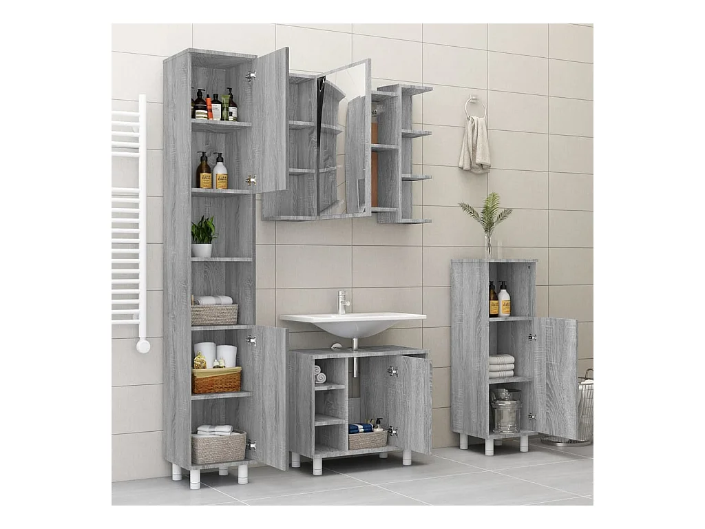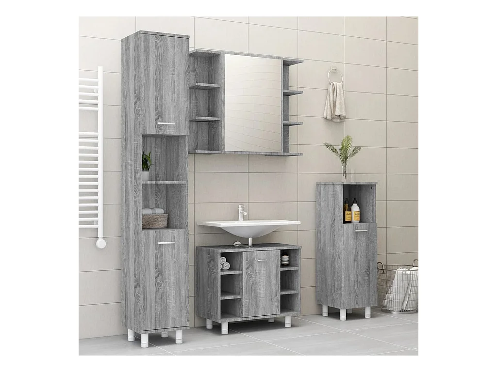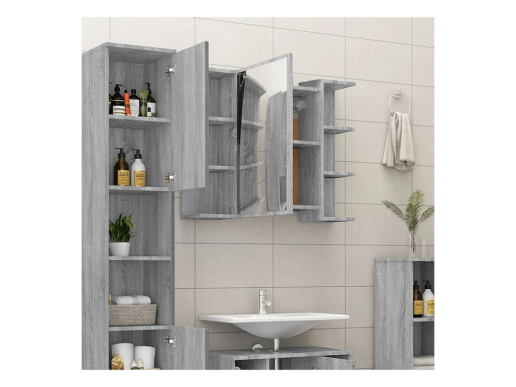 Mobiletto per bagno con specchio Sonoma Grey 80x20,5x64cm in legno