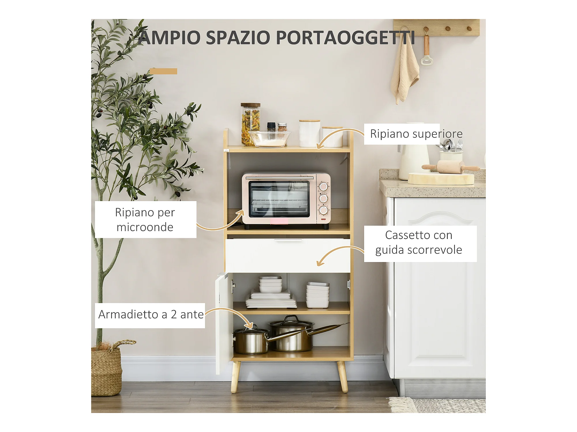 Mobiletto per microonde con ripiano cassetto e armadietto