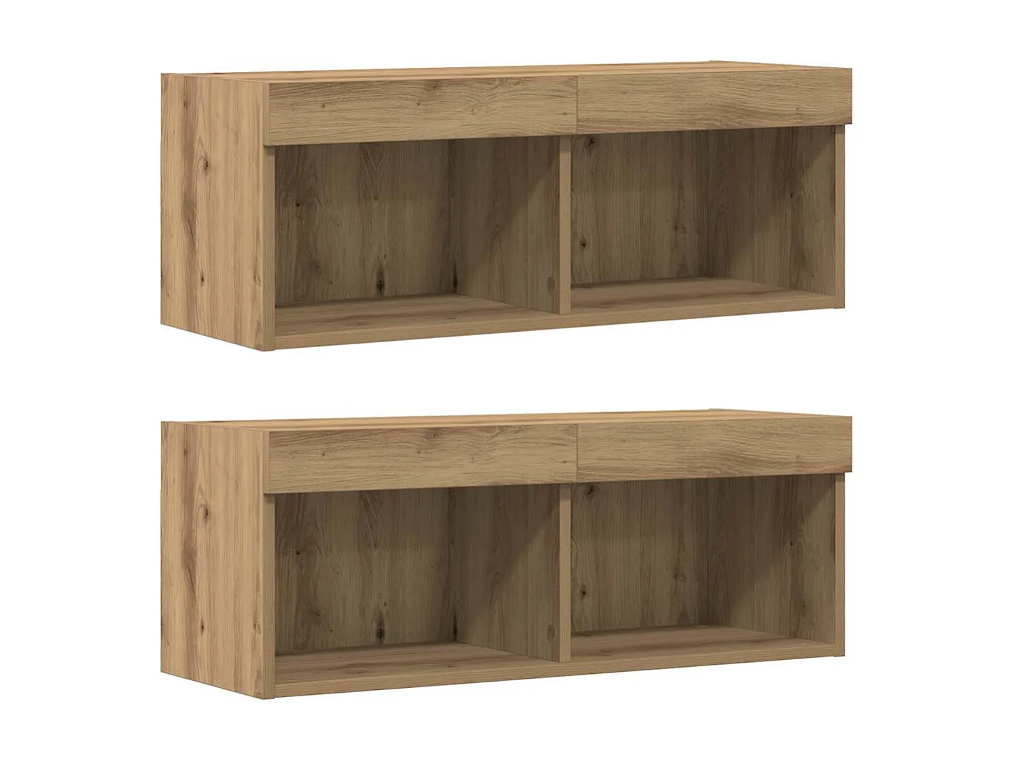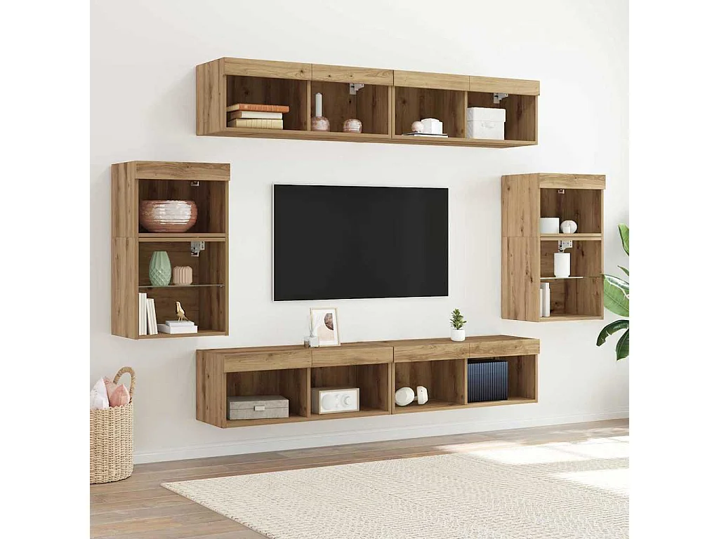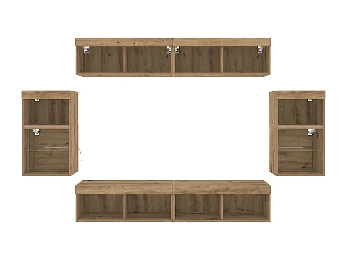 Mobiletto porta TV da parete in rovere lavorato a mano, 8 pezzi