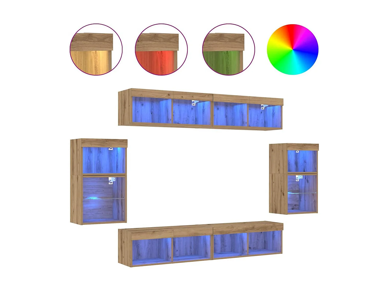 Mobile porta TV con luci a LED in legno di rovere lavorato a mano