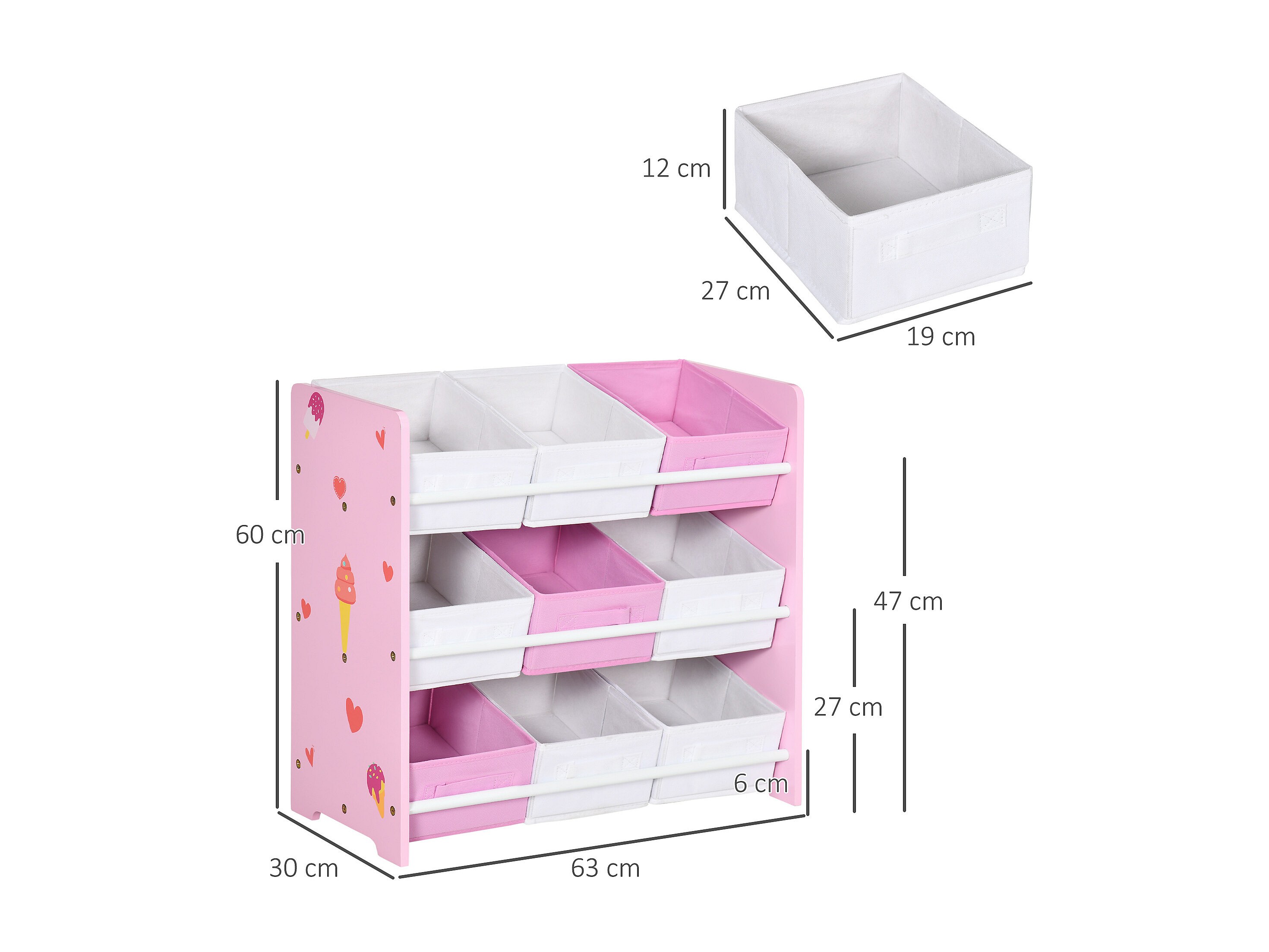 Mobiletto portagiochi con 9 cestini rimovibili in mdf e tessuto rosa