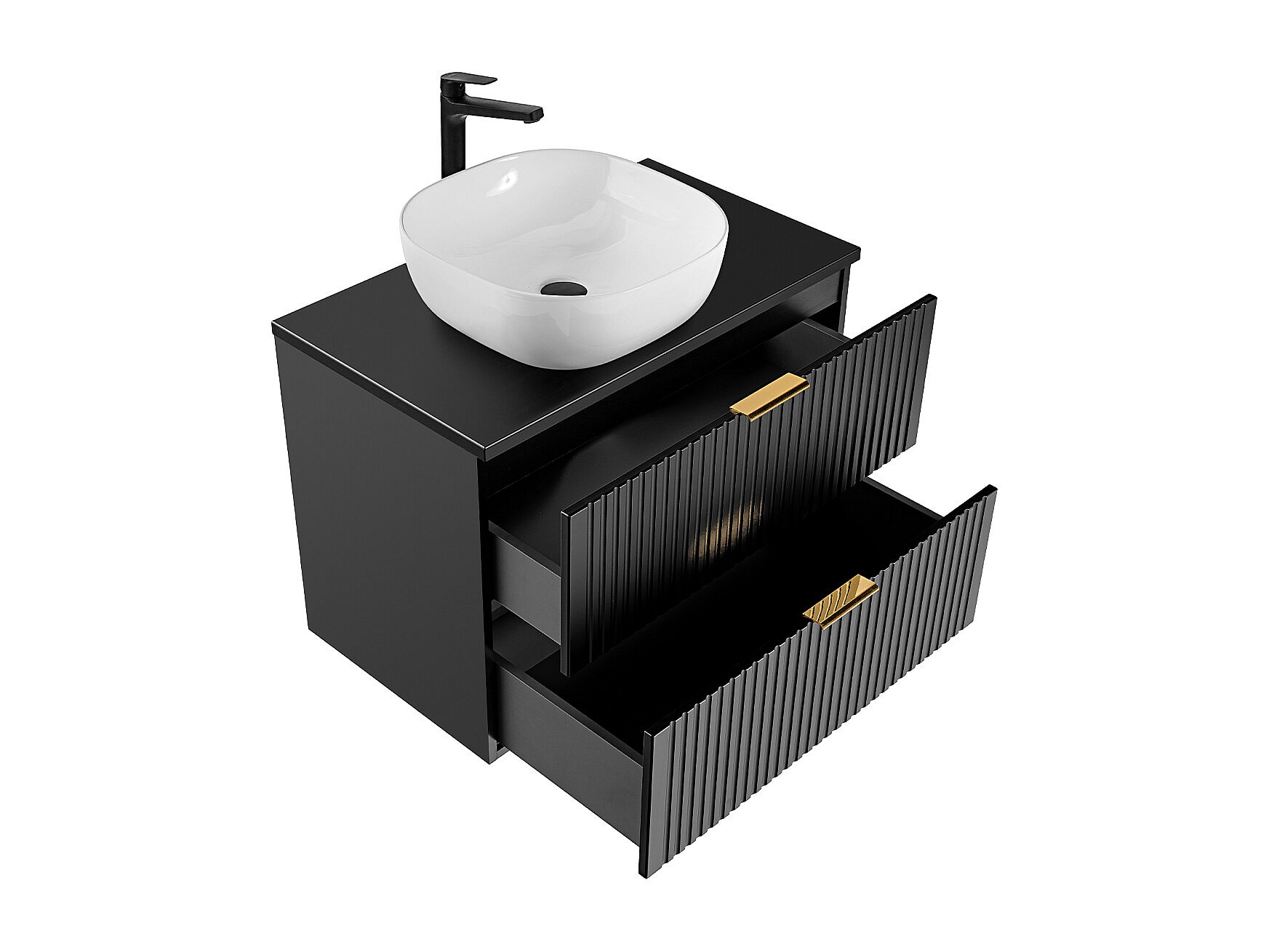 Mobile lavabo singolo 80cm 2 nicchie colonna specchio LED e 3 pensili Gaia Wood e Black - Lavabo nero