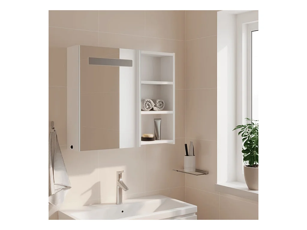 Mobiletto da bagno con specchio LED 80x12,2x68 cm