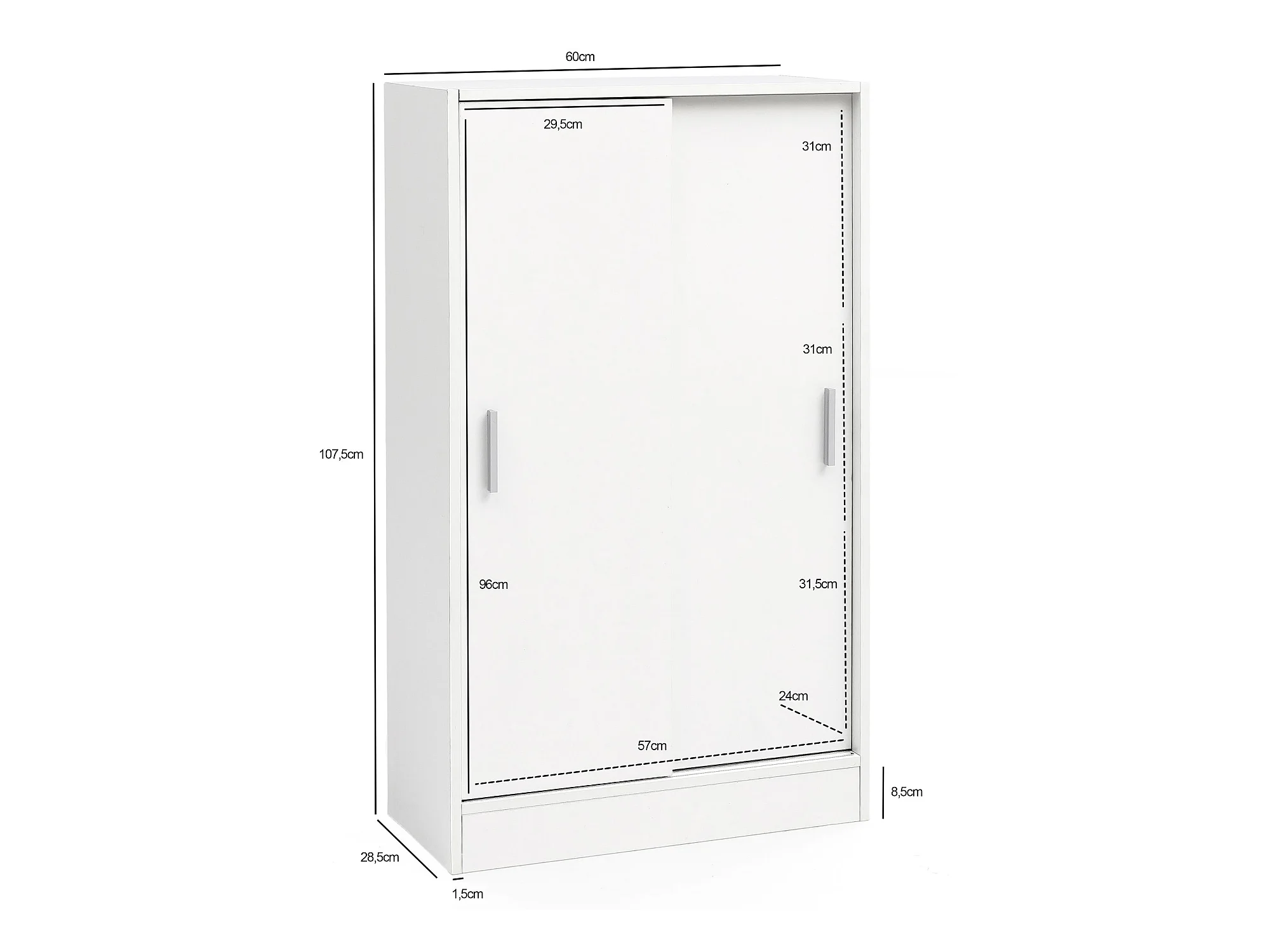 Mobiletto Ufficio Bianco 60x107,5x28,5 cm Credenza Buffet con 2 Ante