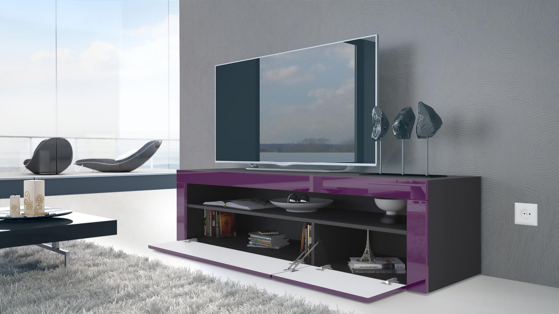 Mobiletto Mogan, mobile TV con 2 ante, 1 anta a ribalta e 1 scomparto a giorno, nero opaco/grigio sabbia lucido (181 x 39 x 35 cm)