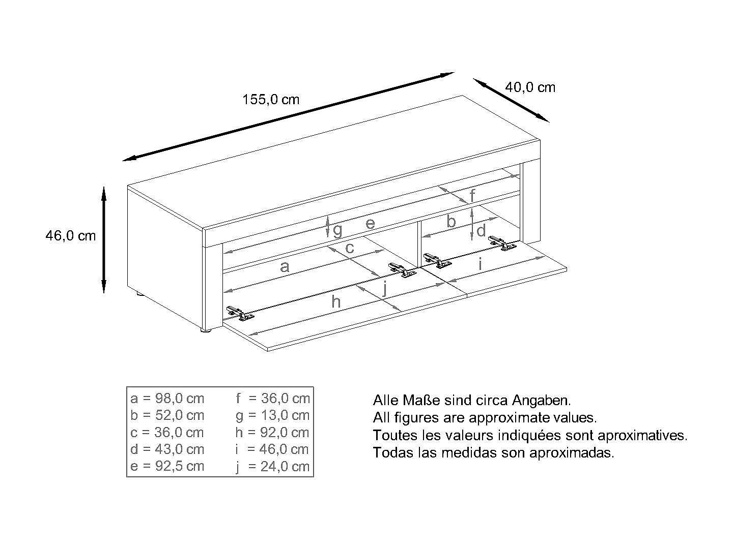Mobiletto Valencia, mobile TV con 1 vano a giorno e 2 ante a ribalta, bianco opaco/rovere naturale/rovere naturale (155 x 46 x 40 cm)