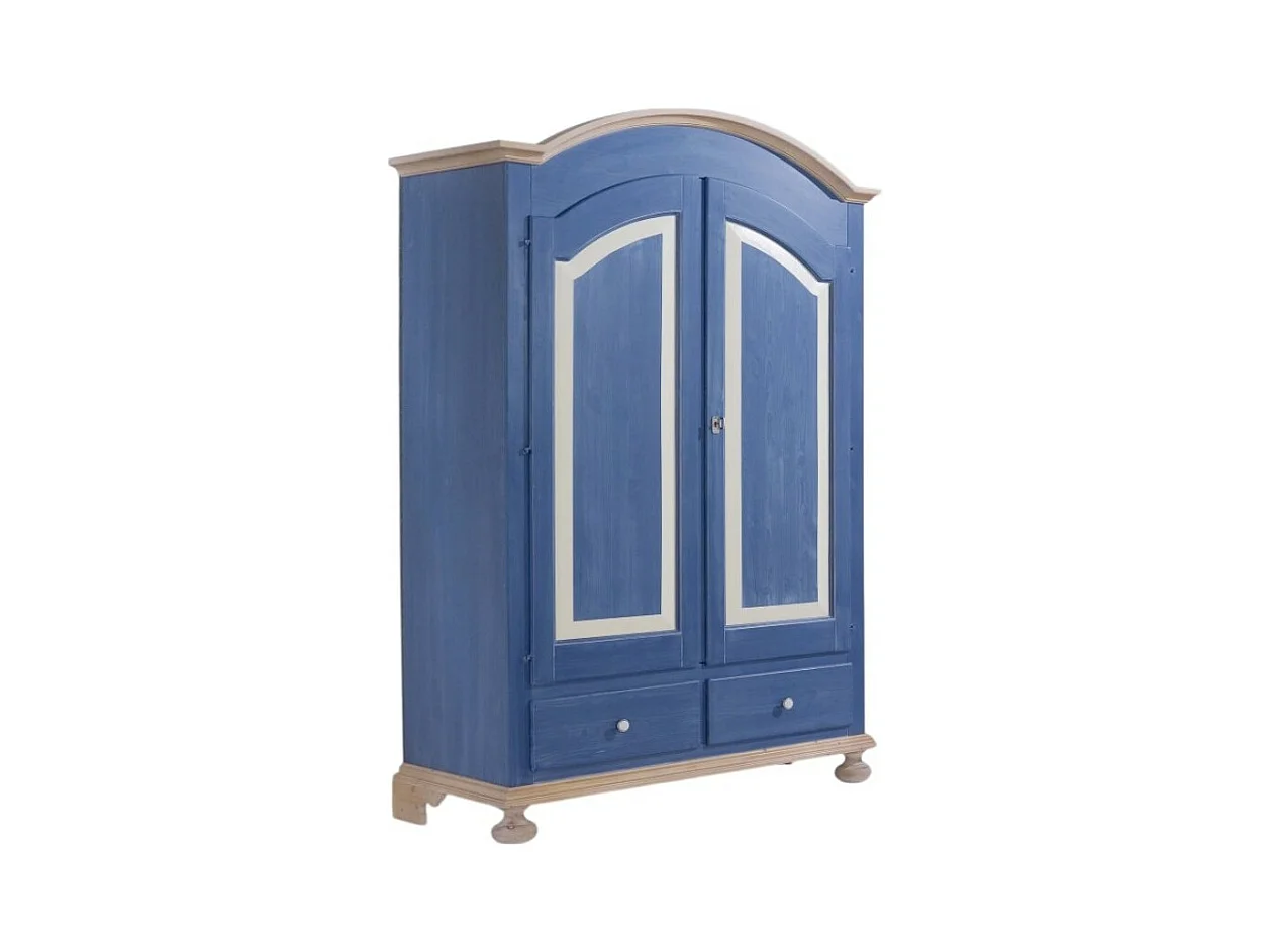 MOBILI 2G - Armadio 2 porte in legno blu e miele shabby 125x60x200 (2202)