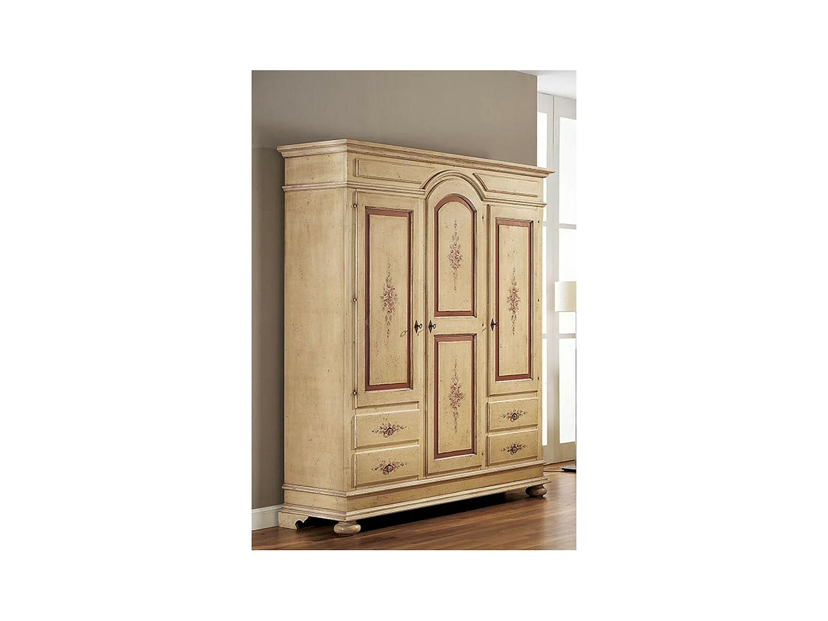 MOBILI 2G - ARMADIO 3 PORTE ARTE POVERA IN LEGNO AVORIO E ROSSO ANTICATO 184X60X223 (1421)