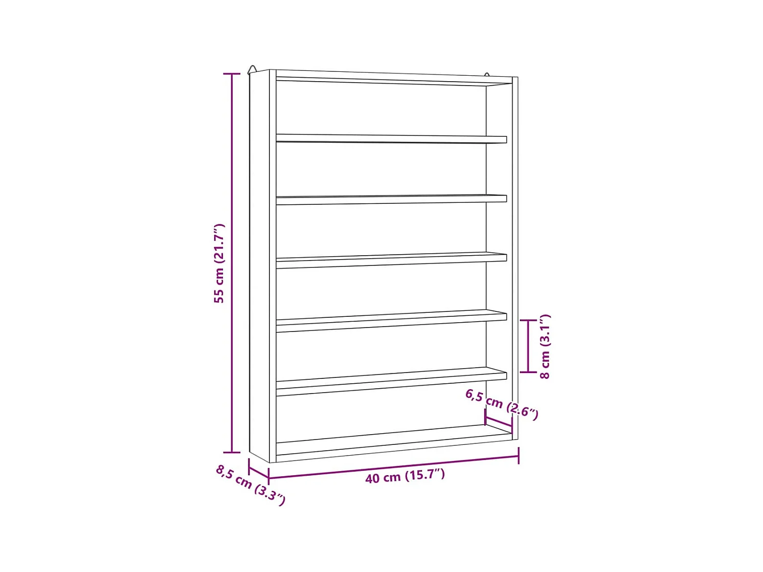 Mobili con Vetrina Parete con 6 Ripiani 40x8,5x55 cm