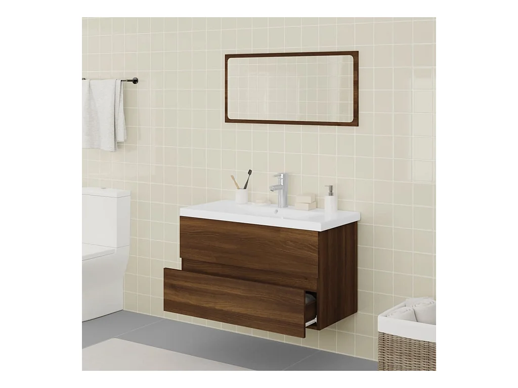 Mobile da bagno in rovere marrone 65x33x60 cm in derivati del legno