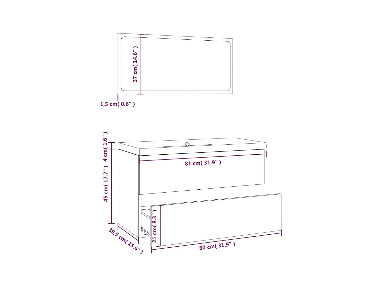 Mobile lavabo Rovere Sonoma 90x38,5x45 cm Multistrato
