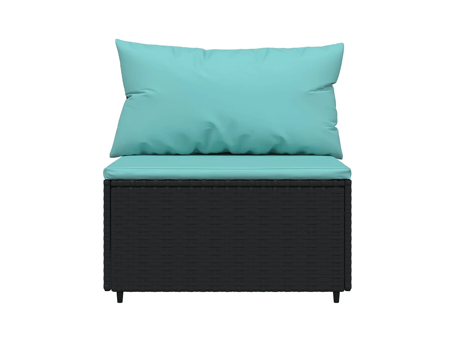 Mobili da giardino 4 pezzi con cuscini neri Vimini in resina