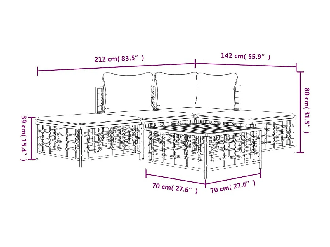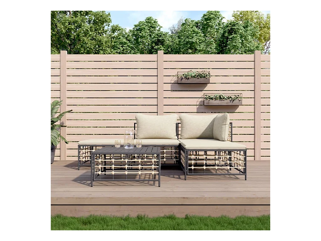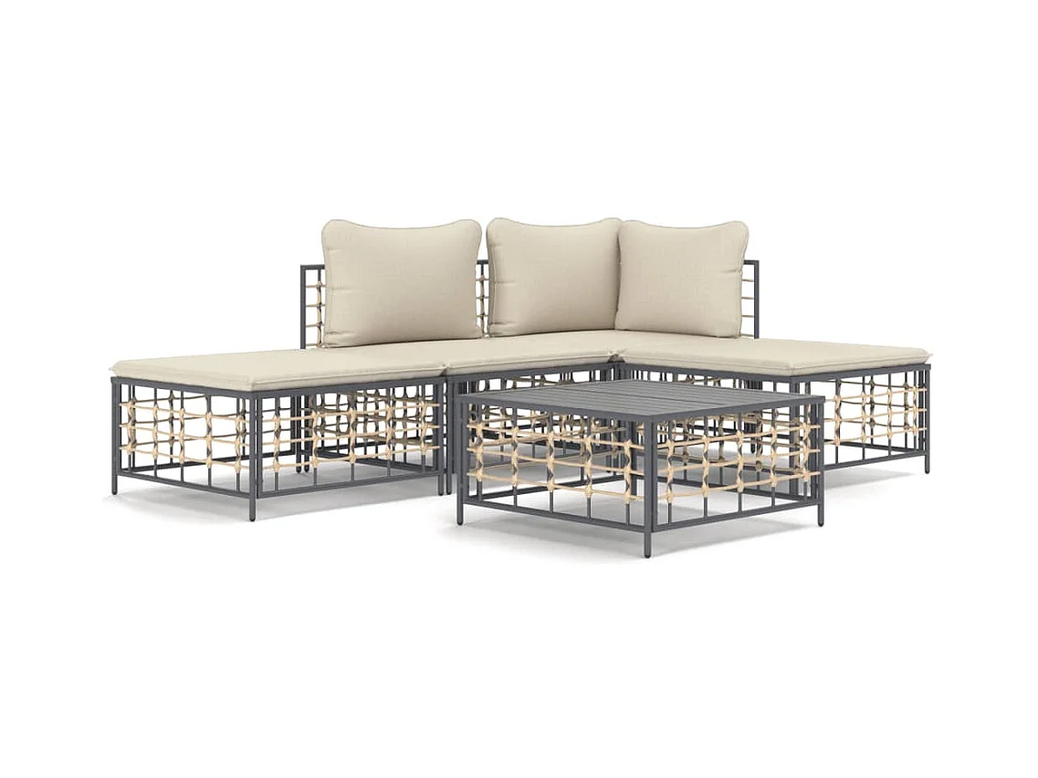 Mobili da giardino 5 pezzi con cuscini in resina intrecciata antracite
