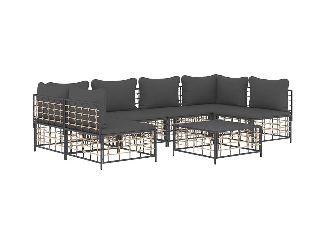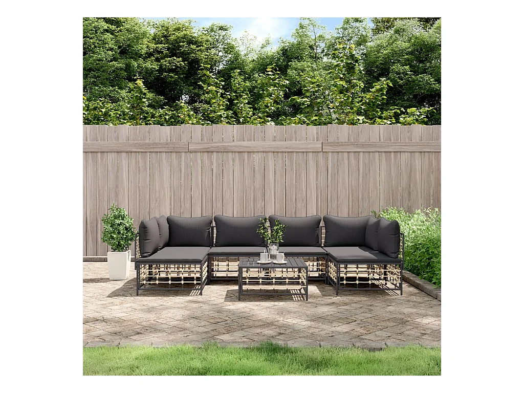 Mobili da giardino 7 pezzi con cuscini in resina intrecciata antracite