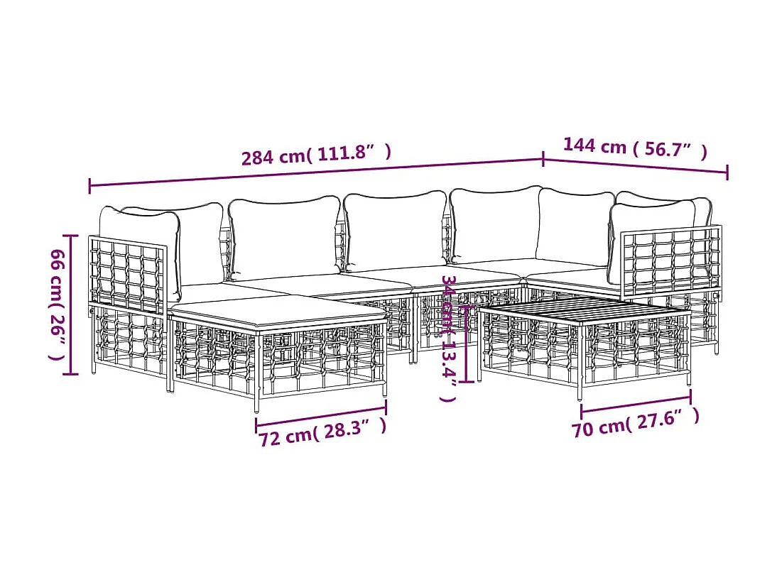 Mobili da giardino 7 pezzi con cuscini in resina intrecciata antracite
