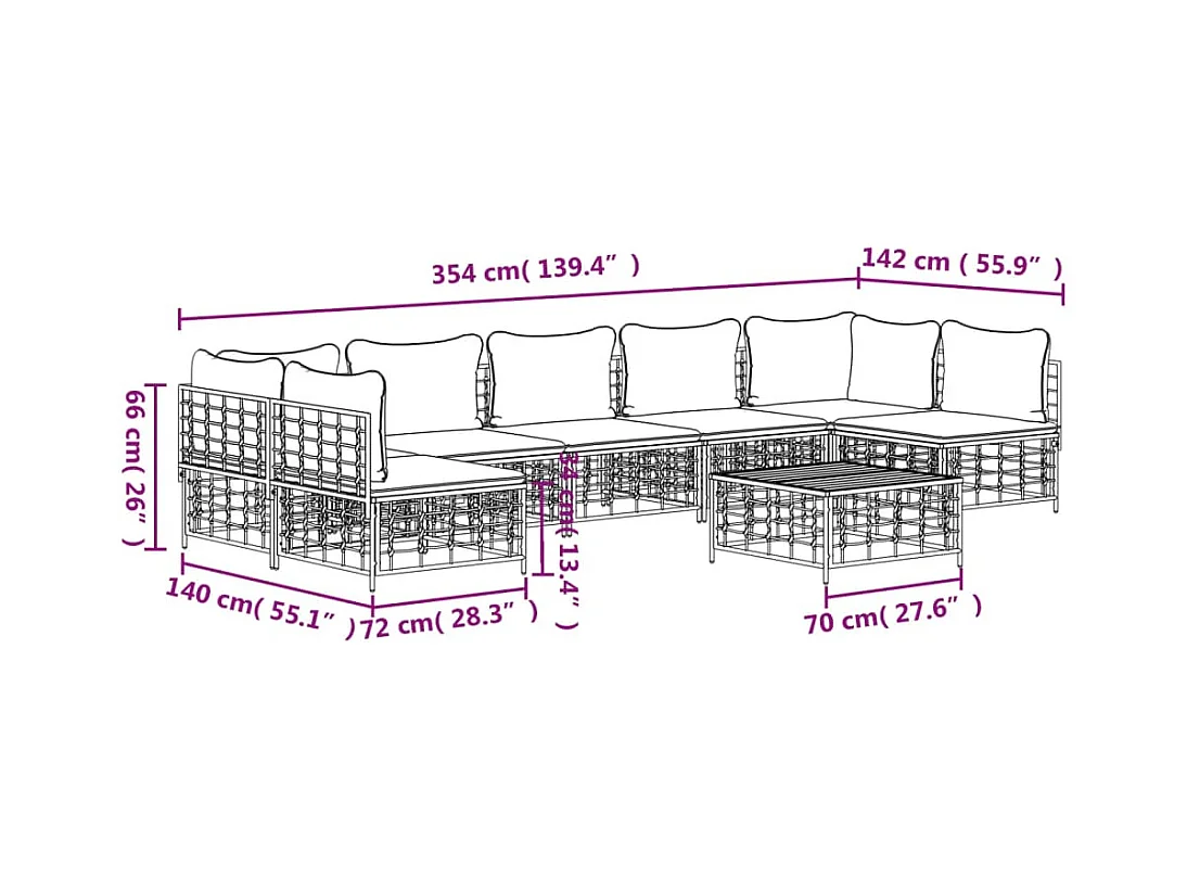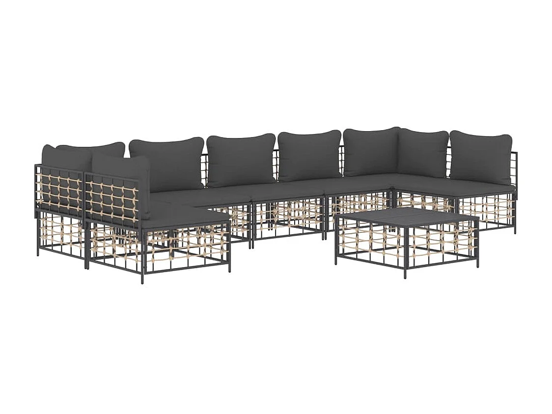 Mobili da giardino 8 pezzi con cuscini in resina intrecciata antracite