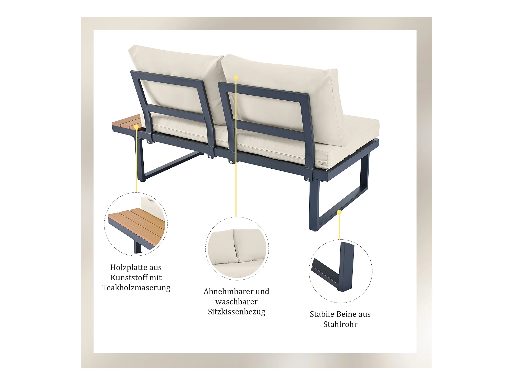 Mobili da giardino angolari in ferro zincato: 1 divano 2 posti + 1 divano 2 posti sollevabile + 1 tavolino - Beige