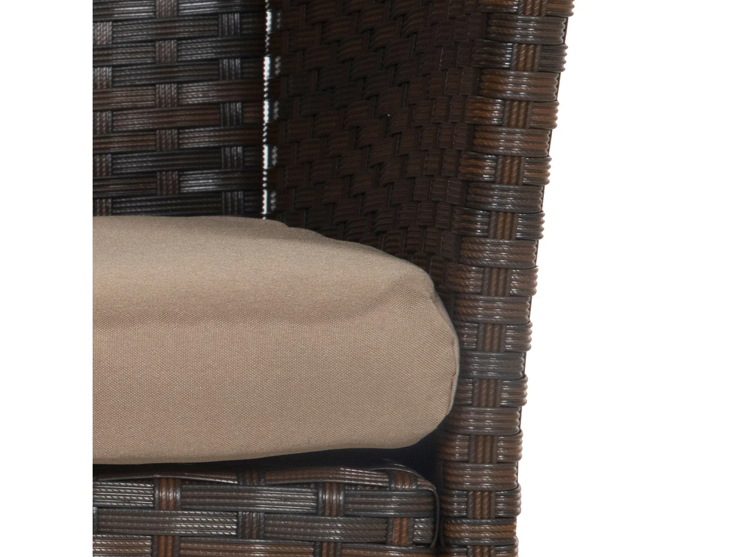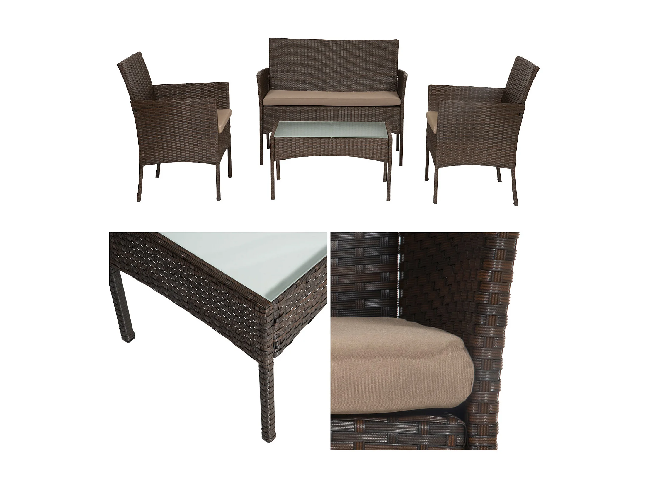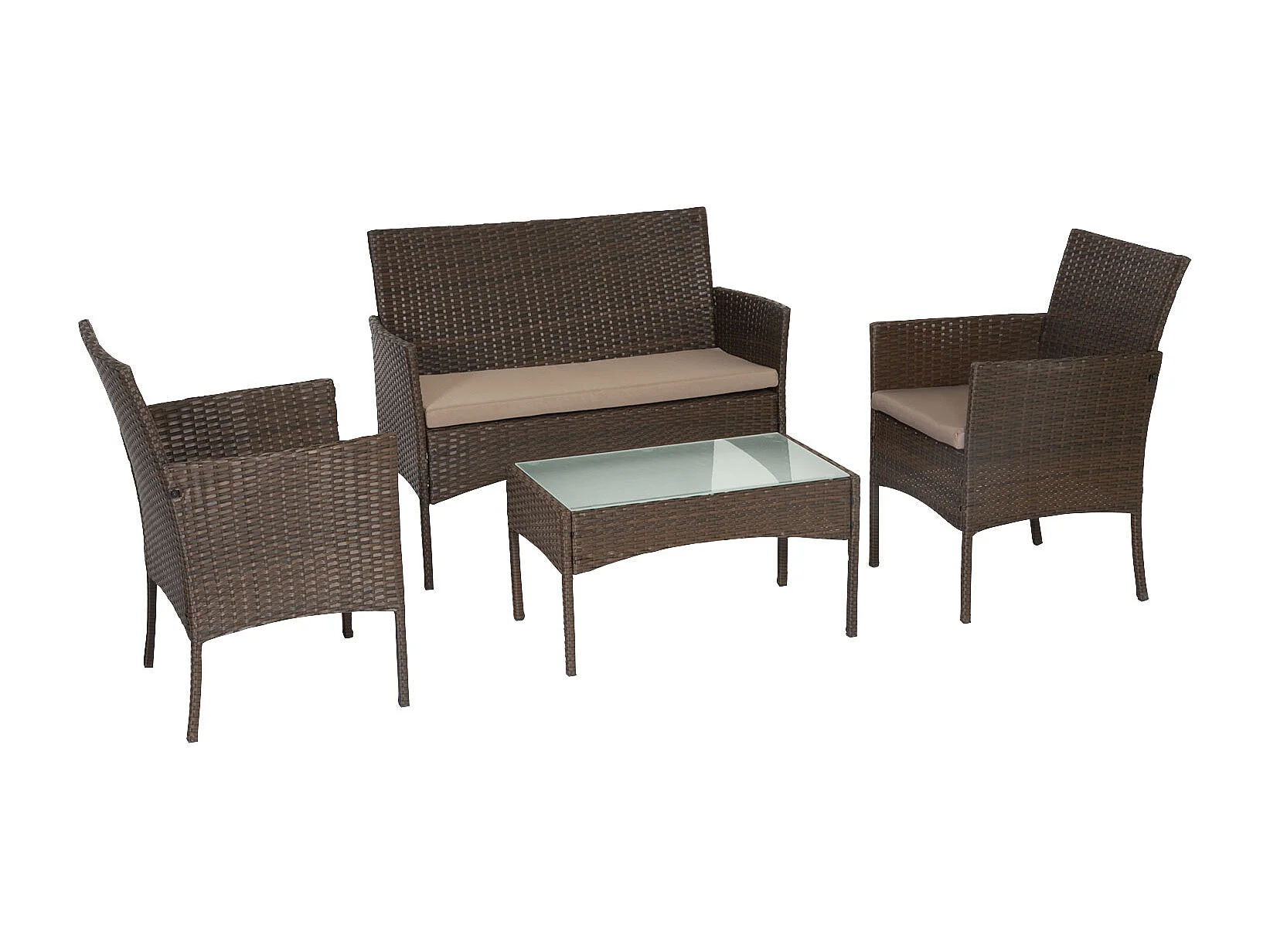 Mobili da giardino in resina intrecciata marrone CORDOUE 4 posti - cuscini tortora