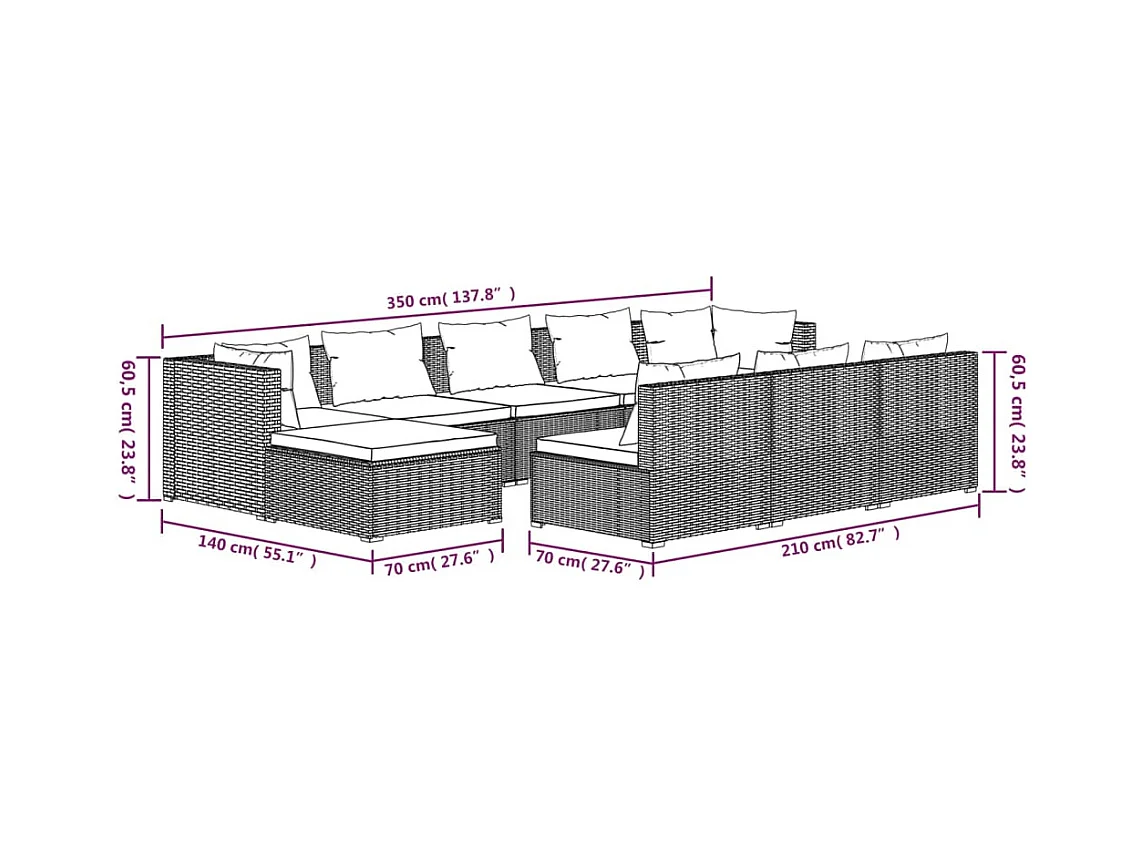 Set Divani da Giardino 11 pz con Cuscini in Polyrattan Marrone