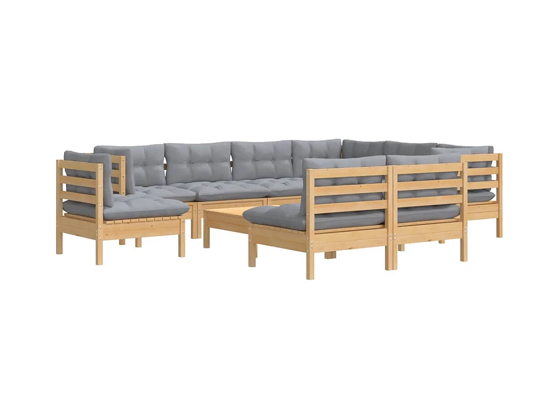 Mobili da giardino mobili da esterno Set di mobili da 10 pezzi con cuscini grigi in legno di pino massiccio 02_0015035