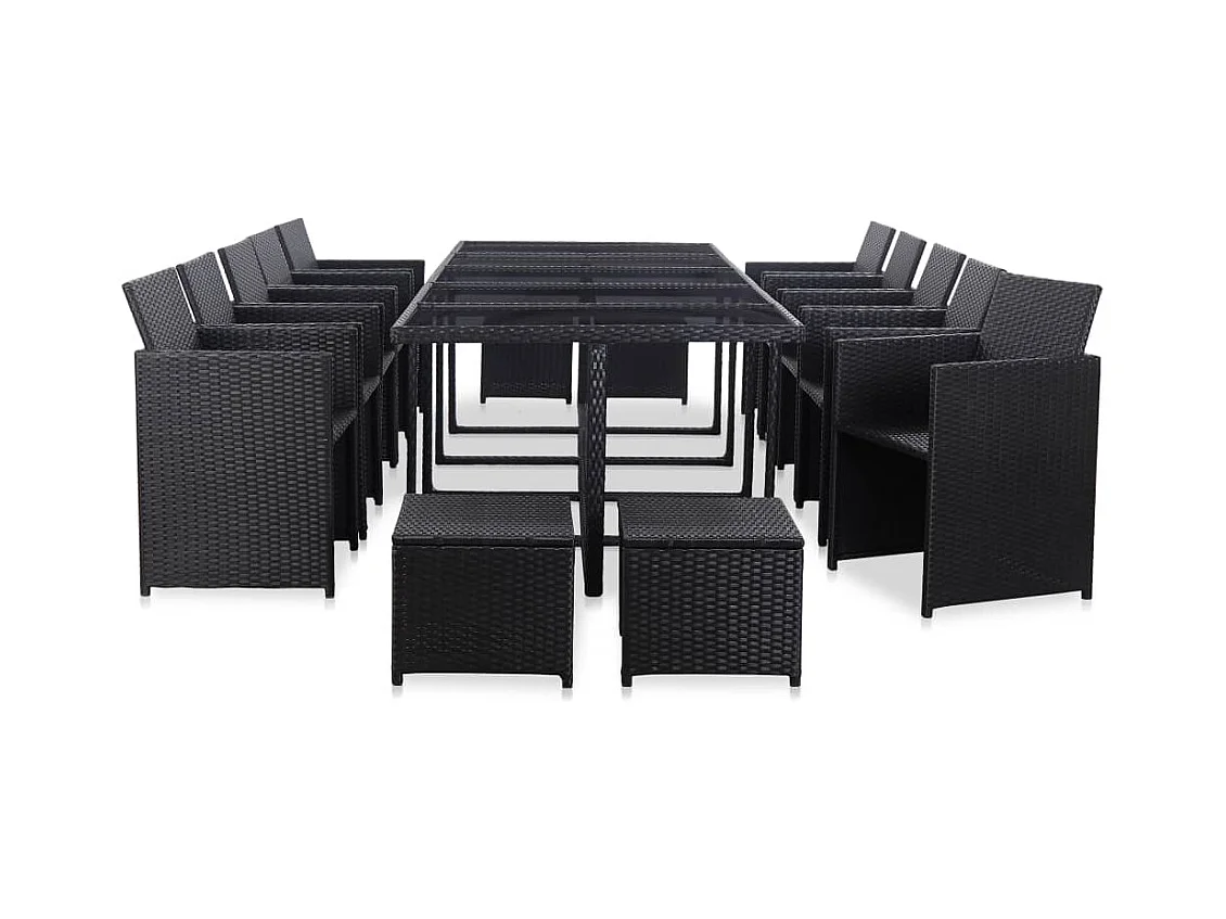 Mobili da giardino mobili da esterno Set di mobili da 15 pezzi con cuscini in resina intrecciata nera 02_0015875