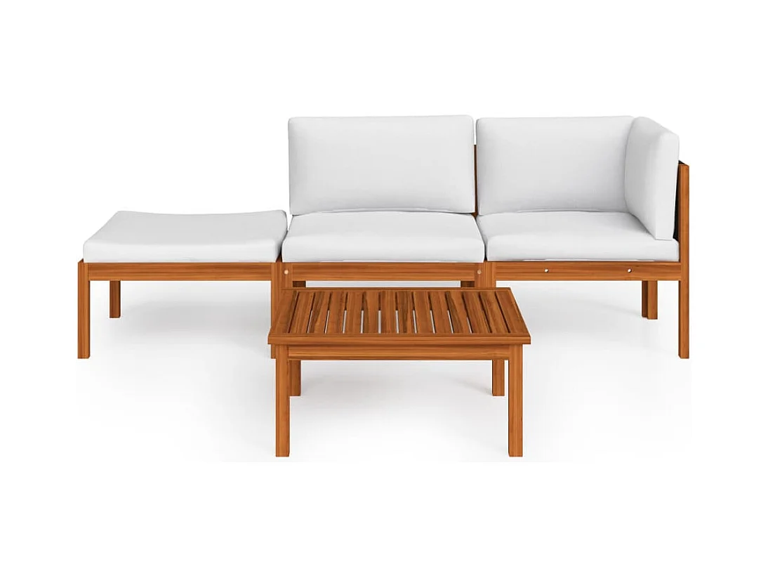 Mobili da giardino mobili da esterno Set di mobili da 4 pezzi con cuscino color crema in legno massello di acacia 02_0016072