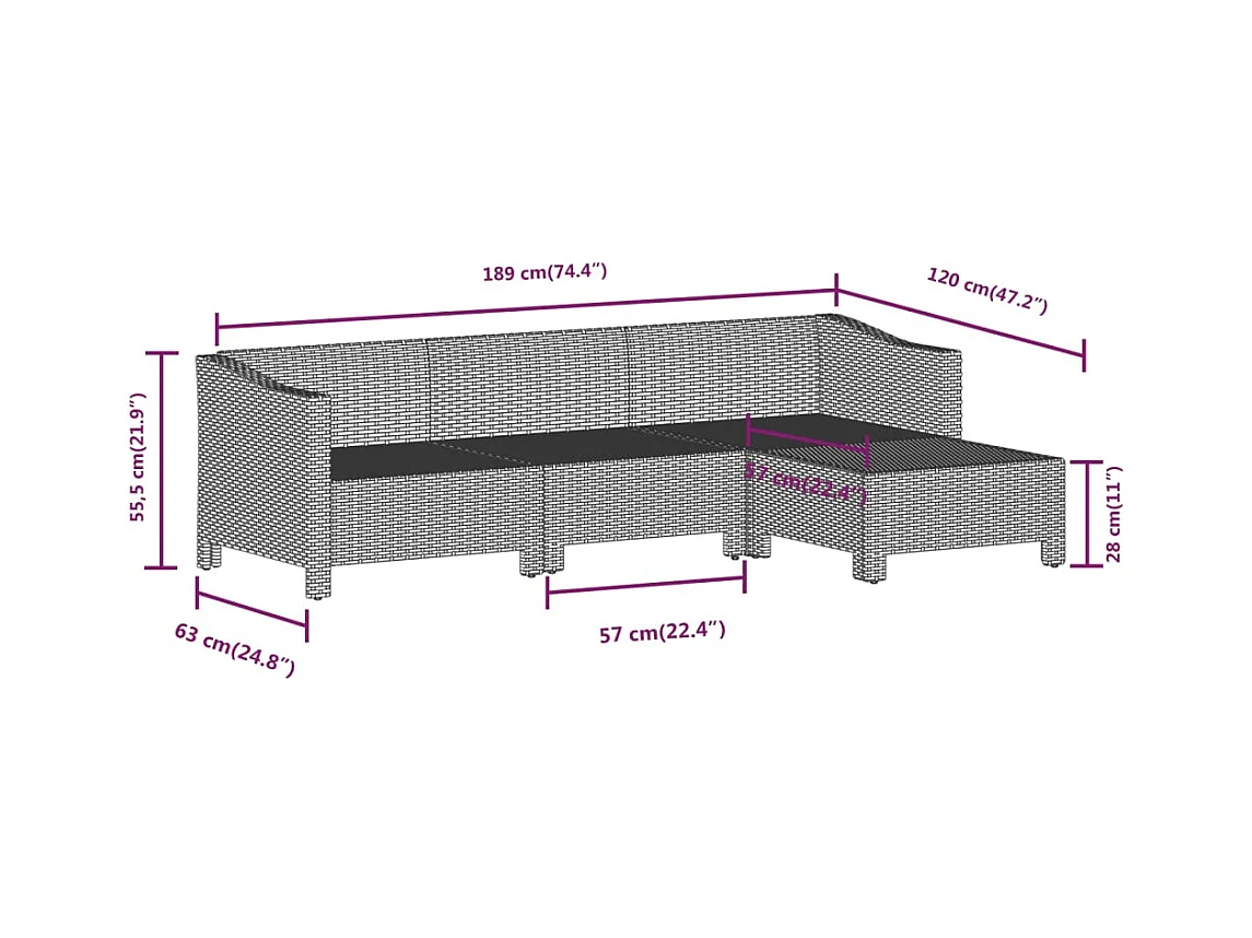 Mobili da giardino mobili da esterno Set di mobili da 4 pezzi con cuscini in resina intrecciata grigia 02_0016184