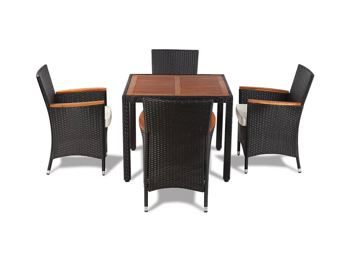 Mobili da giardino mobili da esterno Set di mobili da 5 pezzi con cuscini in resina intrecciata nera 02_0016473