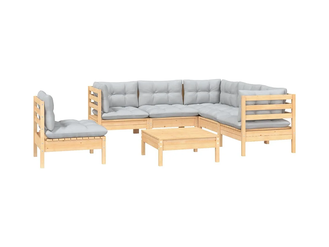 Mobili da giardino mobili da esterno Set di mobili da 6 pezzi con cuscini grigi in legno di pino 02_0016769