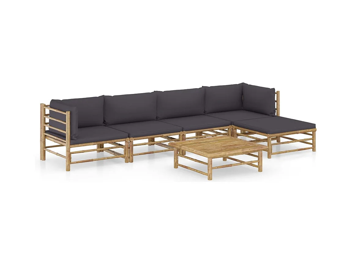 Mobili da giardino mobili da esterno Set di mobili da 6 pezzi con cuscini in bambù grigio scuro 02_0016785