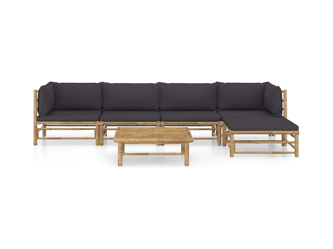 Mobili da giardino mobili da esterno Set di mobili da 6 pezzi con cuscini in bambù grigio scuro 02_0016784