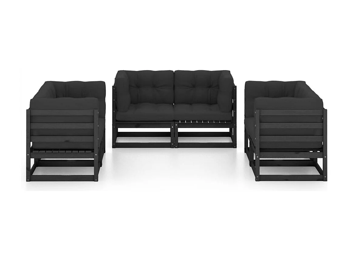 Set Divani da Giardino 6 pz con Cuscini Neri Massello di Pino