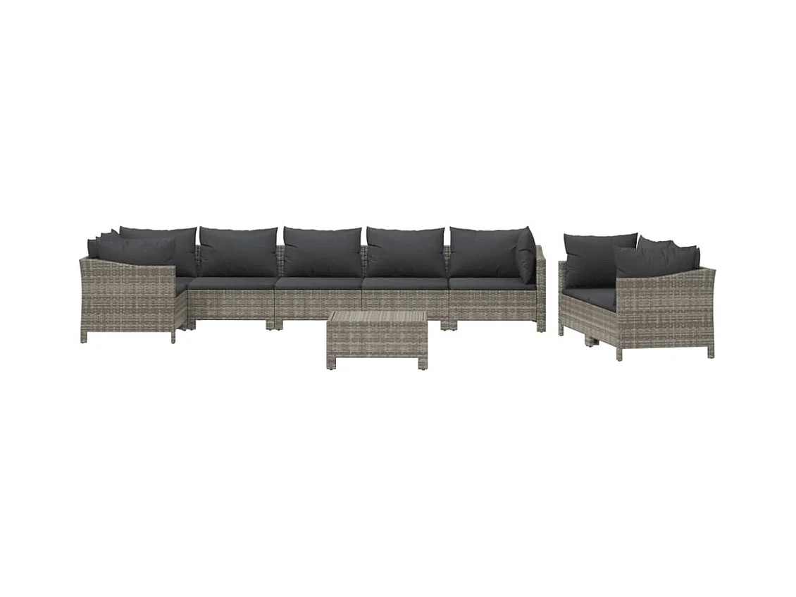 Set Divani da Giardino 9 pz con Cuscini in Polyrattan Grigio