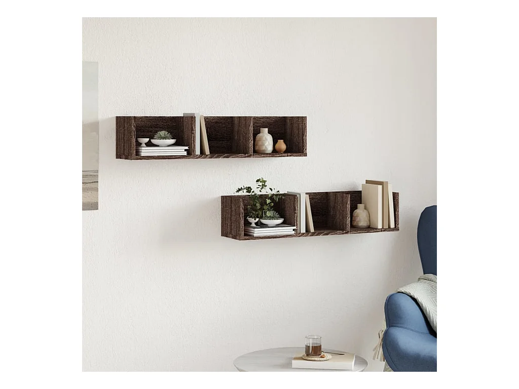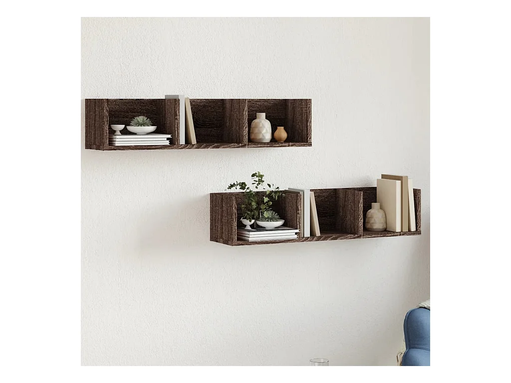 Mobili Parete 2pz Rovere Marrone 75x18x16,5cm Legno Multistrato