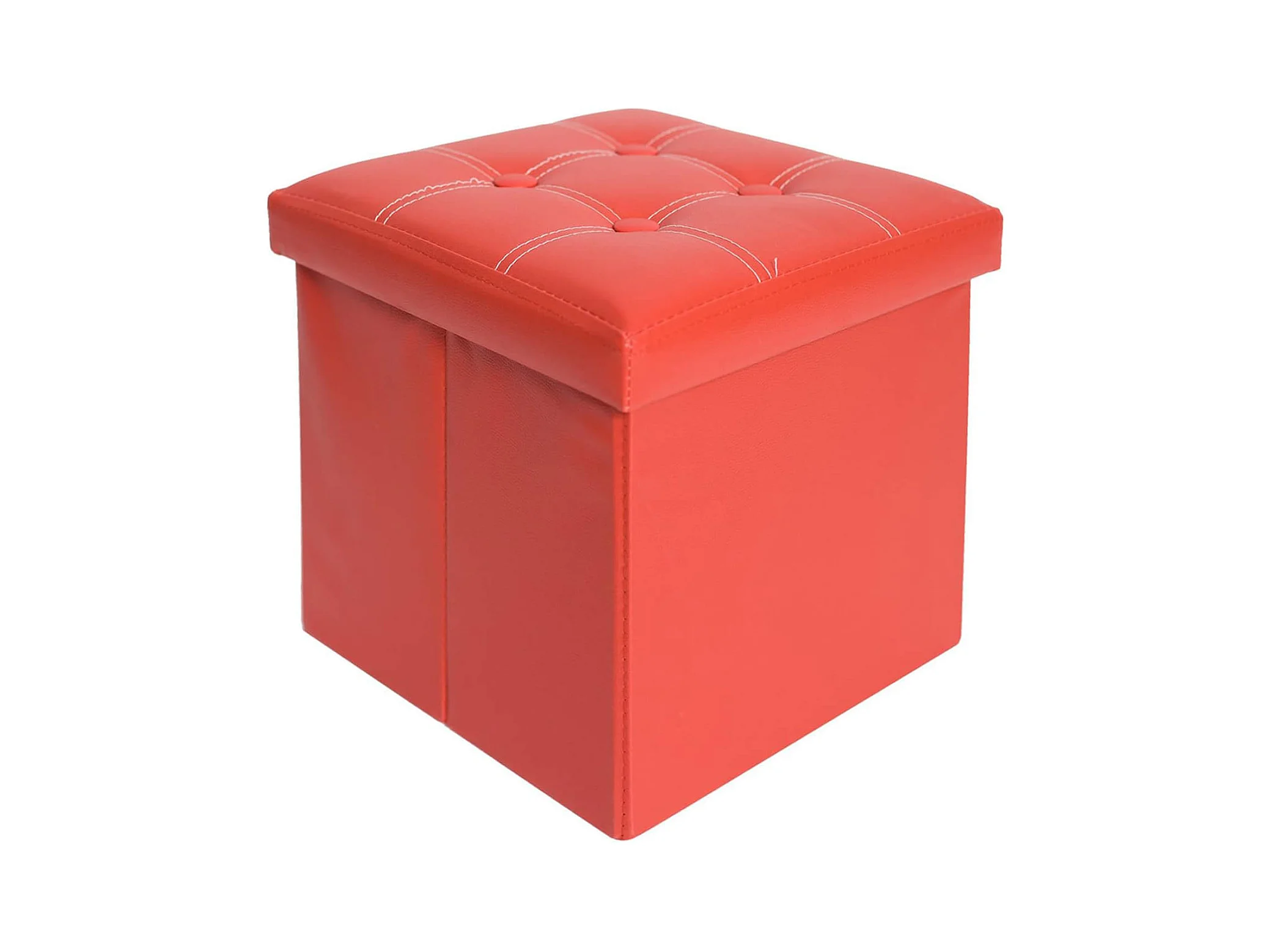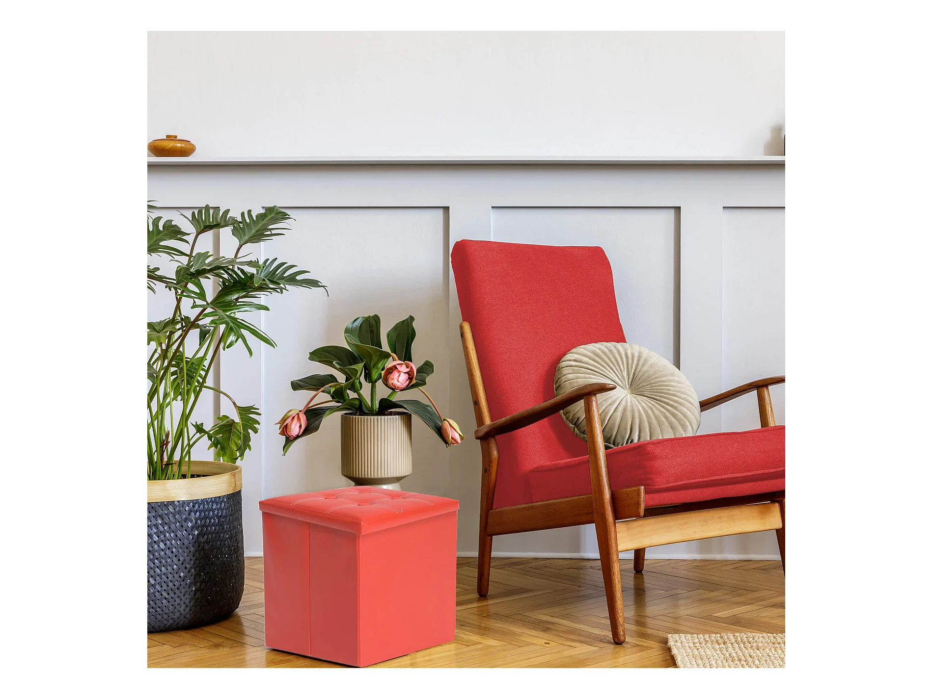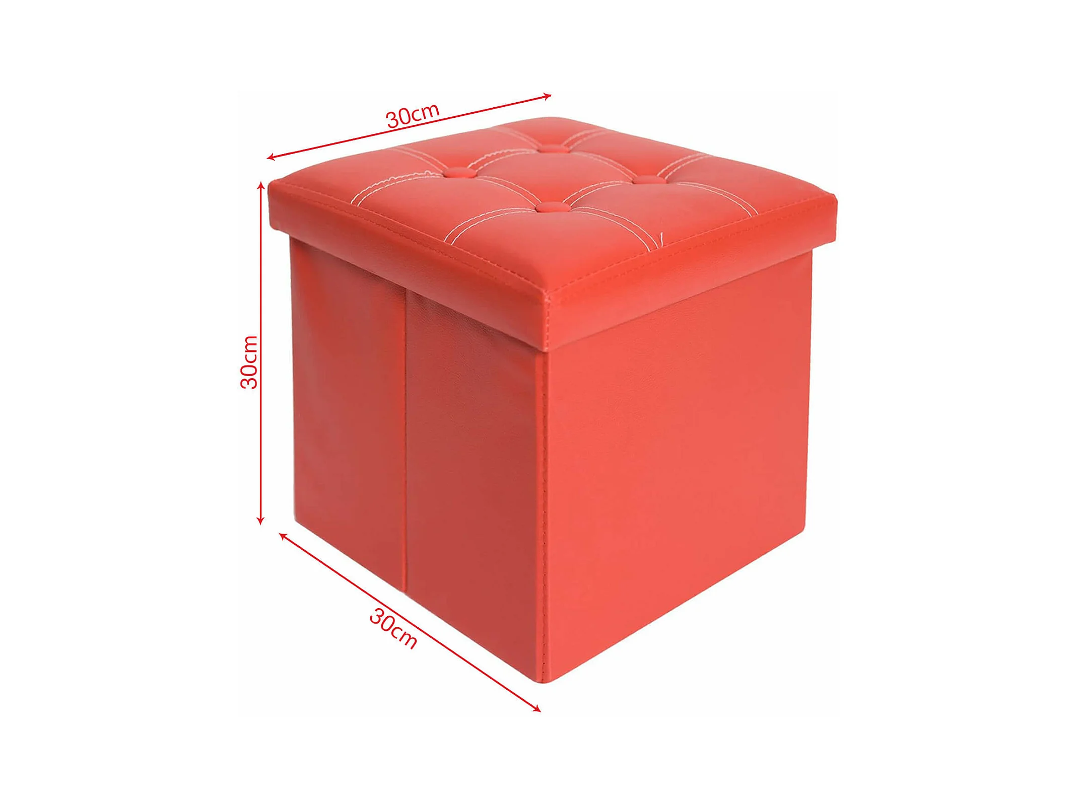 Mobili Rebecca Pouf Cubo Contenitore Rosso Puff Sgabello Ecopelle 30x30x30