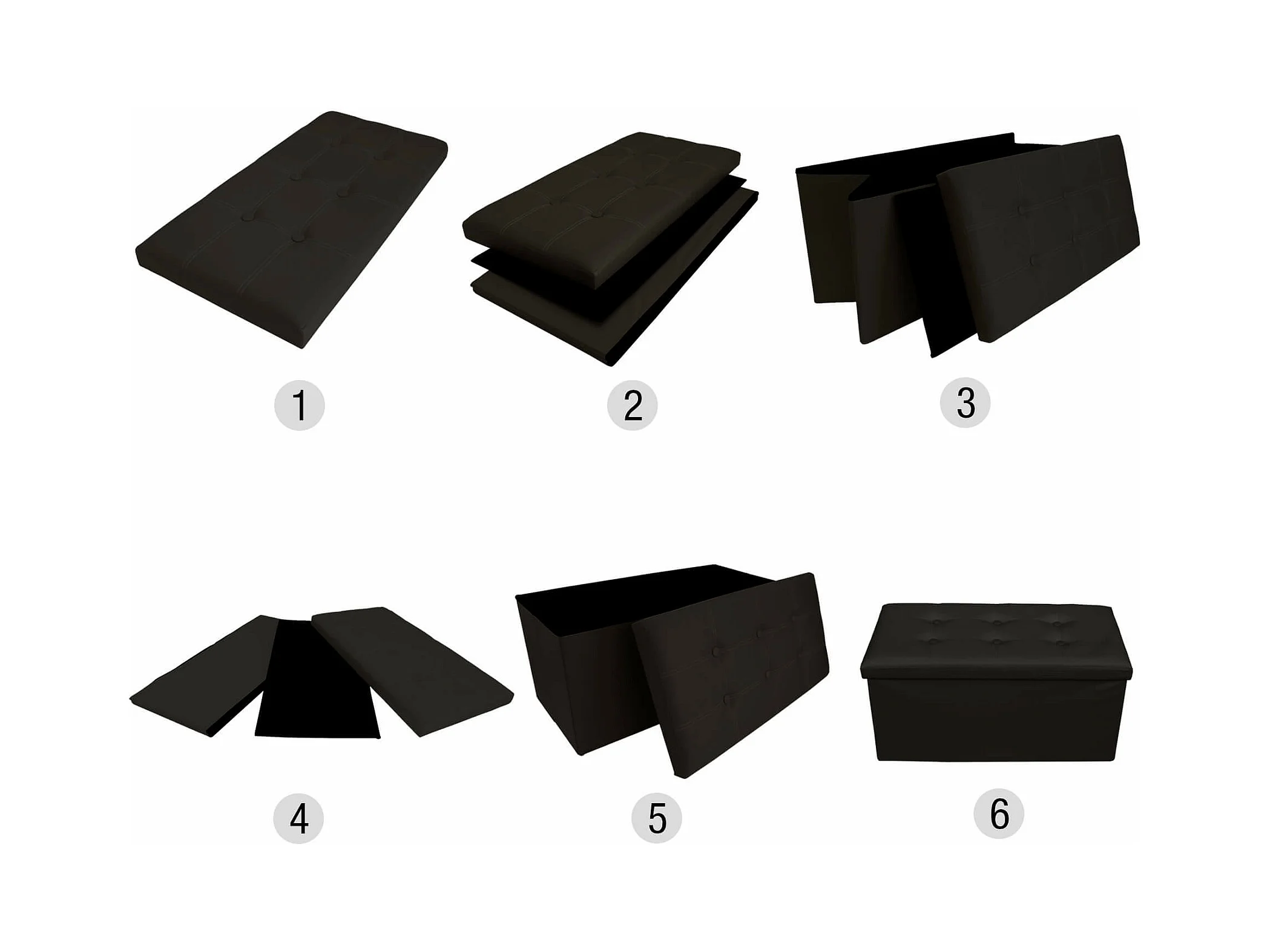 Mobili Rebecca Puff Sgabello Baule Nero Design Moderno Arredamento 38x76x38