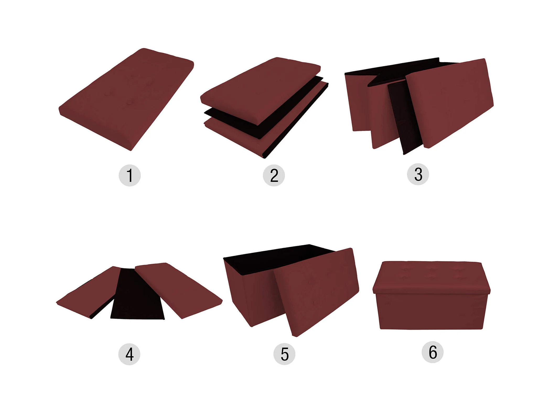 Mobili Rebecca Seduta Contenitore Pouf Similpelle Bordeaux 38x76x38