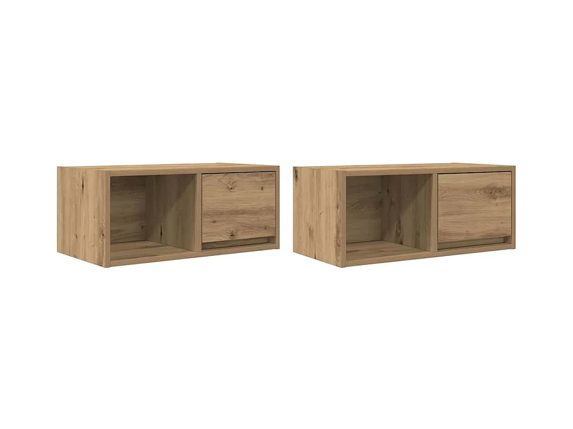 Mobili TV 2 pezzi in rovere artigianale 60x31x25,5cm in legno ingegnerizzato