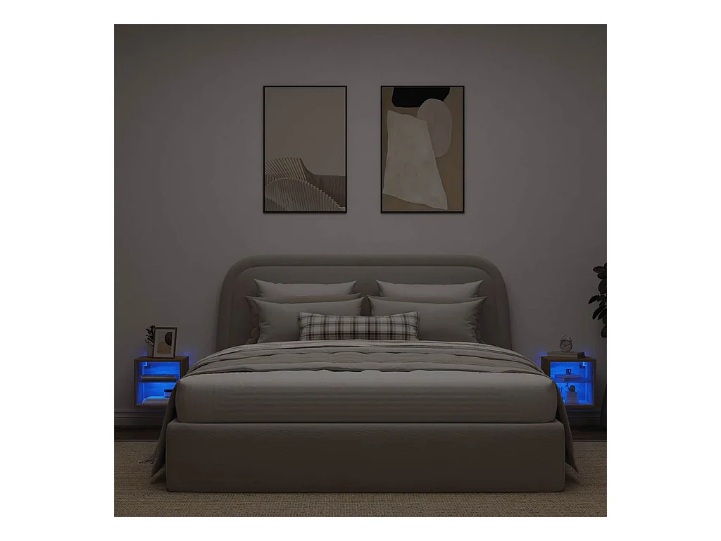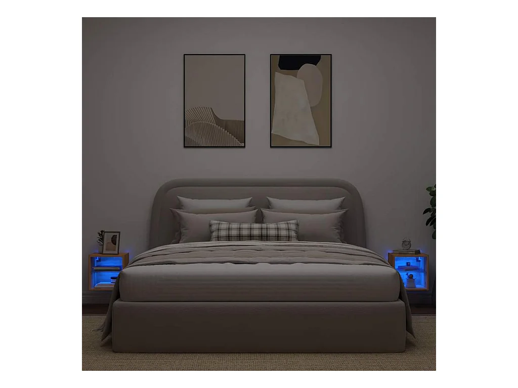 Mobili TV a parete con luci LED, 2 pezzi, rovere lavorato a mano