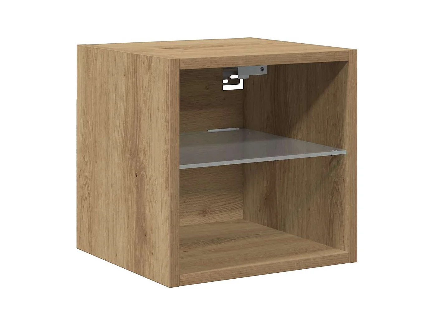 Mobile porta TV a parete con luci LED, rovere lavorato a mano, 30x28,5x30 cm
