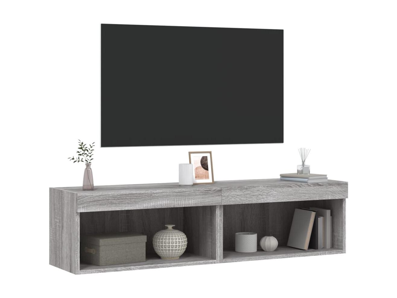 Mobili TV con luci LED 2 pezzi grigio sonoma 60x30x30 cm