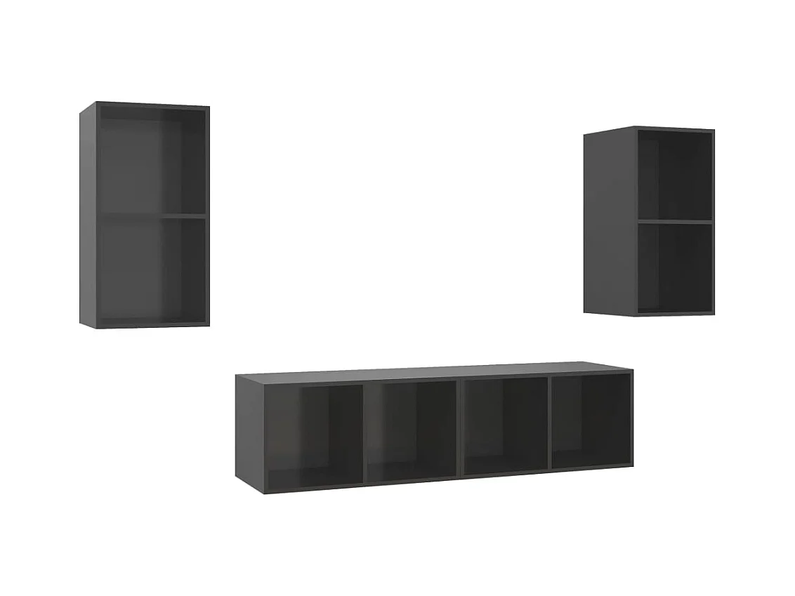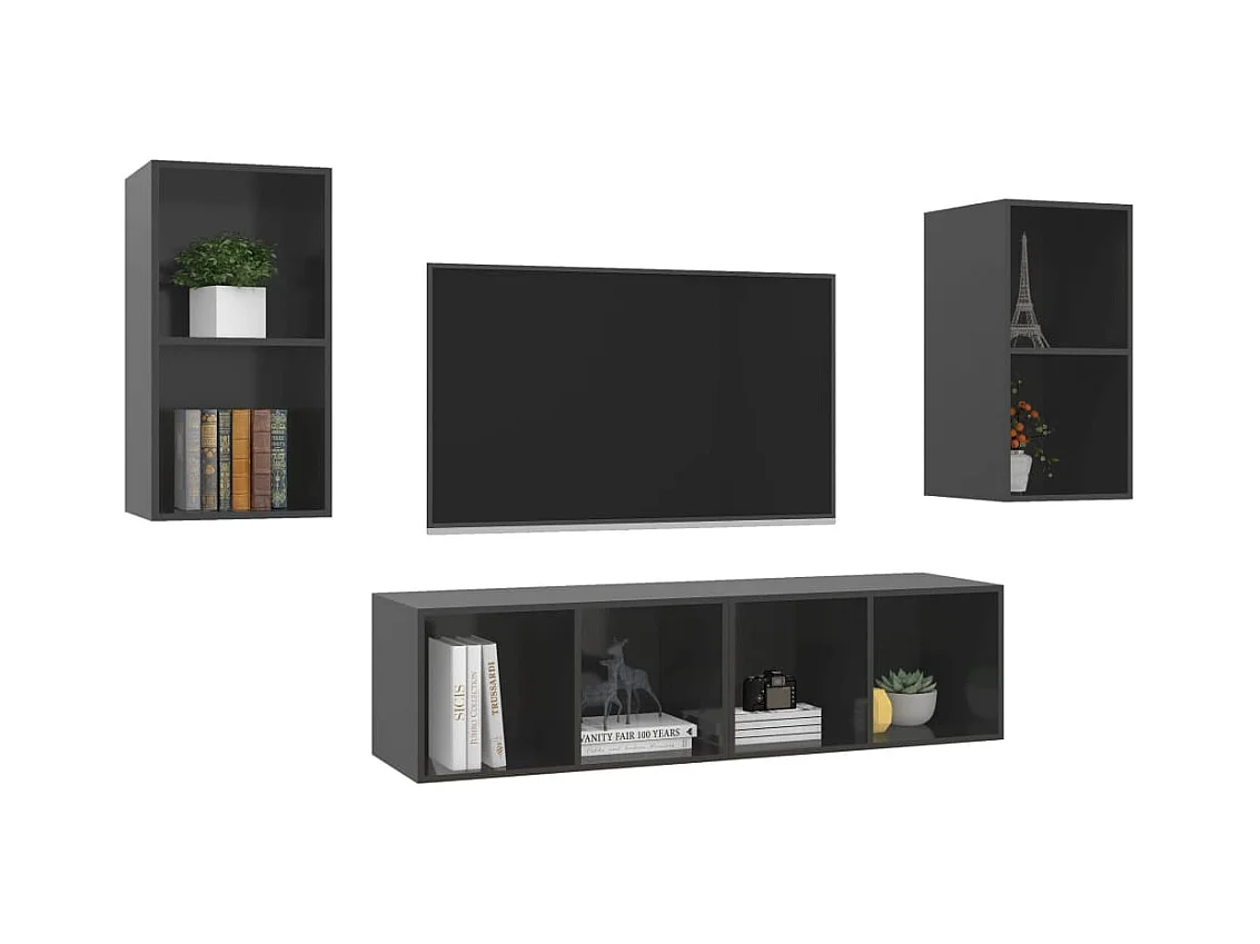Mobili TV da parete a 4 pezzi, grigio lucido, legno ingegnerizzato