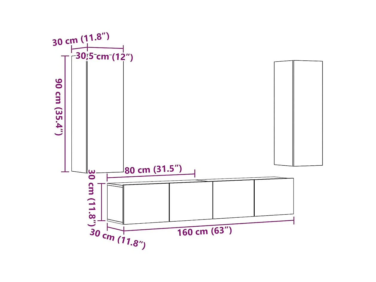 Set di mobili TV da 4 pezzi in legno ingegnerizzato Sonoma Oak